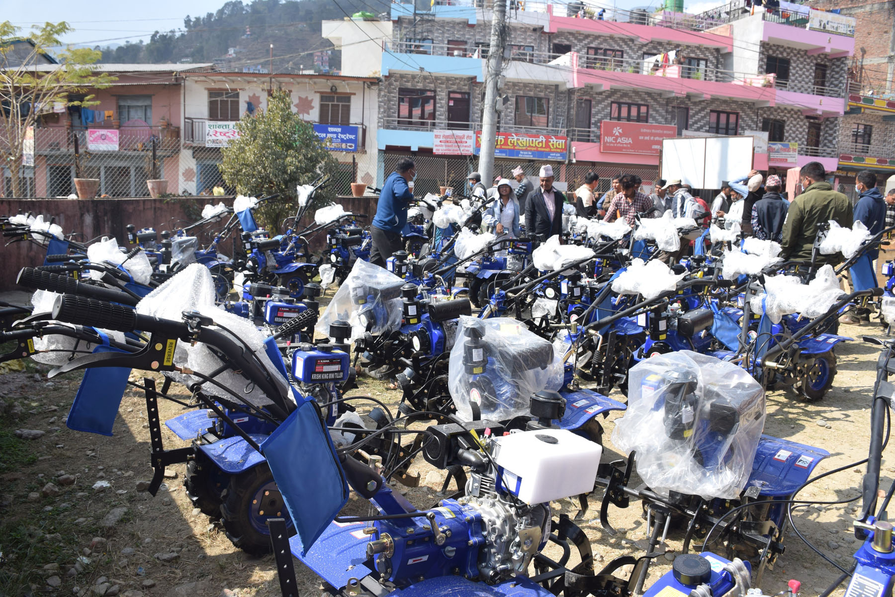 लमजुङ । पहाडी जिल्ला लमजुङमा अनुदानमा यहाँका ९० जना किसानलाई हाते ट्रयाक्टर वितरण गरिएको छ । कृषिमा यान्त्रीकरण गरी लागत घटाउने र उत्पादन बढाउने उद्देश्यले जिल्लाको बेंसीशहर नगरपालिकाले नगरभित्रका ९० जना किसानलाई आज शुक्रवार हाते ट्रयाक्टर वितरण गरेको हो ।