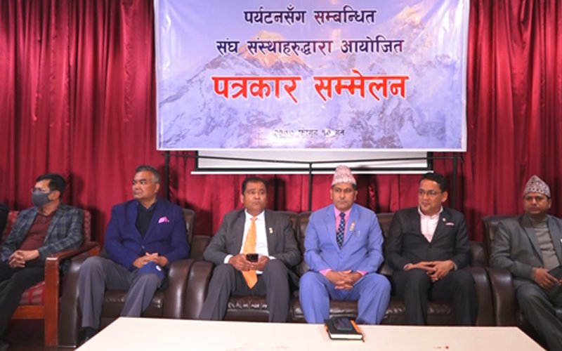 पर्यटन व्यवसायीहरुका सबै छातासंगठनहरुले आज सोमवार काठमाडौंमा संयुक्त पत्रकार सम्मेलन आयोजना गरी सेफ्टि पोर्टेकलको आधारमा सेवा दिनेगरी सम्पूर्ण पर्यटन गतिविधि गर्न दिन माग गरेका हुन् ।