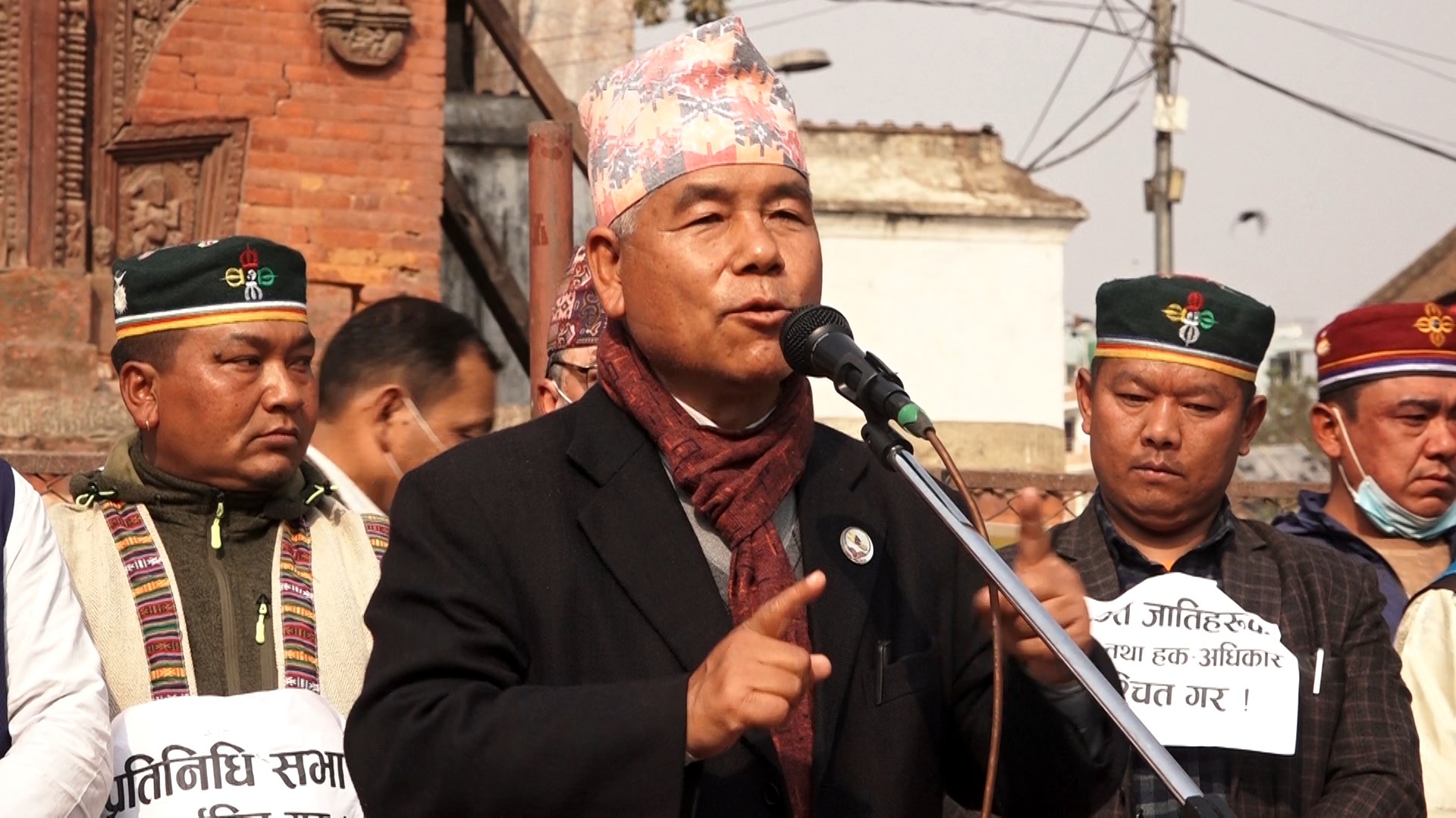 विरोध प्रदर्शनमा प्रदर्शनकारीहरुले ‘संविधानको रक्षा गर’, ‘वीर सहिदहरु लाल सलाम’, ‘प्रतिनिधि सभा पुनस्थापित गर’, ‘प्रतिगमन मुर्दावाद’, ‘भ्रष्ट्रचारीलाई कारबाही गर’, ‘उत्पीडित जातिहरुको पहिचान तथा हक अधिकार सुनिस्चित गर’ लगायत लेखिएका प्लेकार्ड बोकेका थिए ।