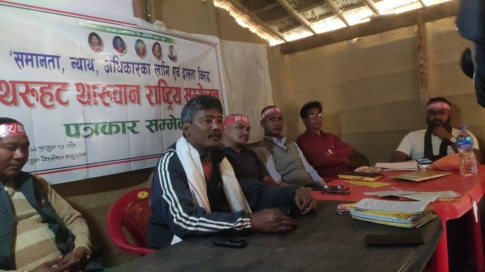 मोर्चाले बिहीवार कैलालीको हसुलियामा पत्रकार सम्मेलन गर्दै शान्ति, सद्भाव, न्याय र अधिकारका लागि दासताविरुद्धको थरुहट थारुवान विशेष राष्ट्रिय सम्मेलनको तयारी पुरा भएको जनाएको छ ।