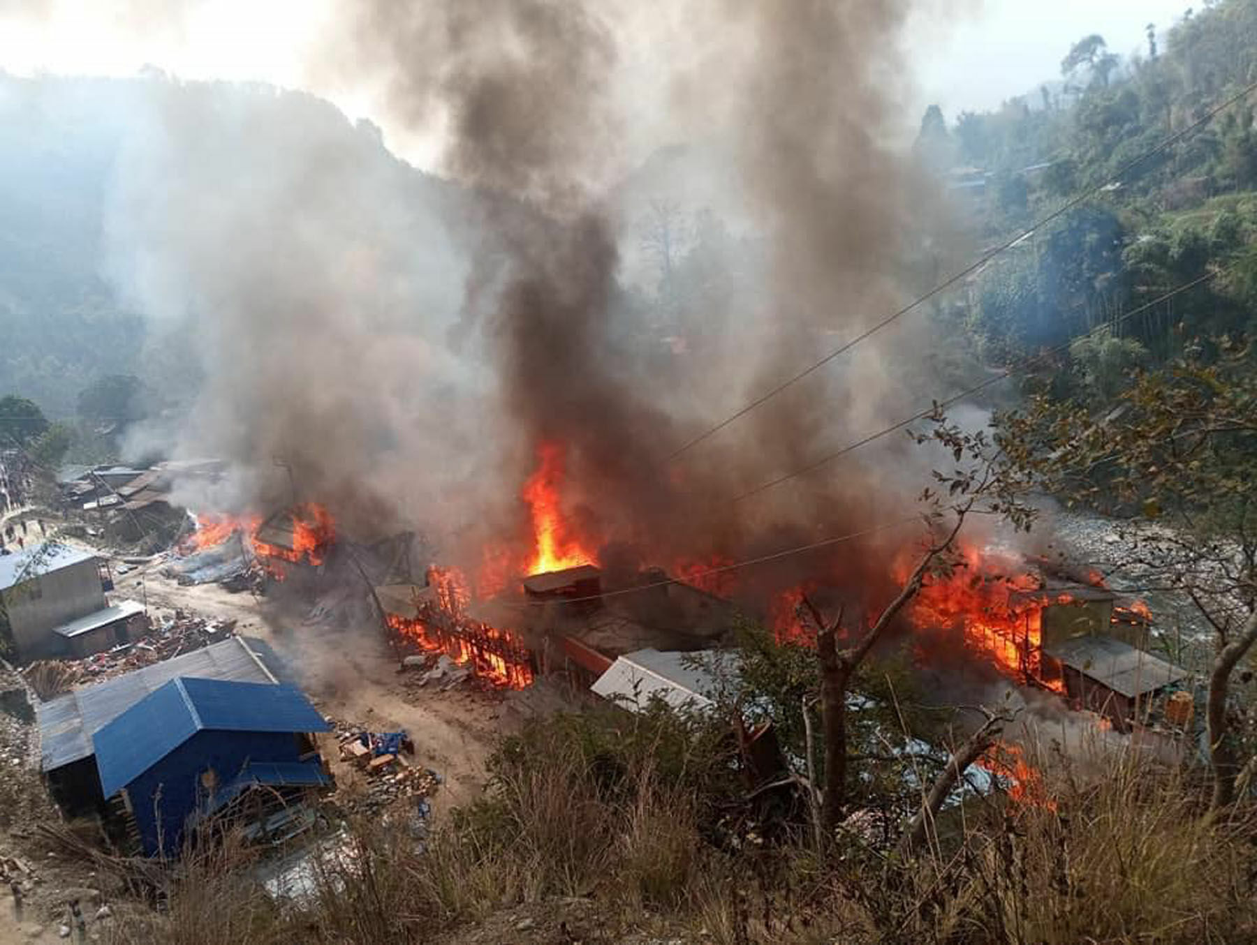 मेरिङ्देन –३ स्थित खाम्लुङको दोभान बजारमा यही १८ गते भएको आगलागीमा परी ५० घर नष्ट र ६३ परिवार विस्थापित भएका थिए । आगलागीबाट करीब ४० करोड बराबरको क्षति भएको जनाइएको छ ।