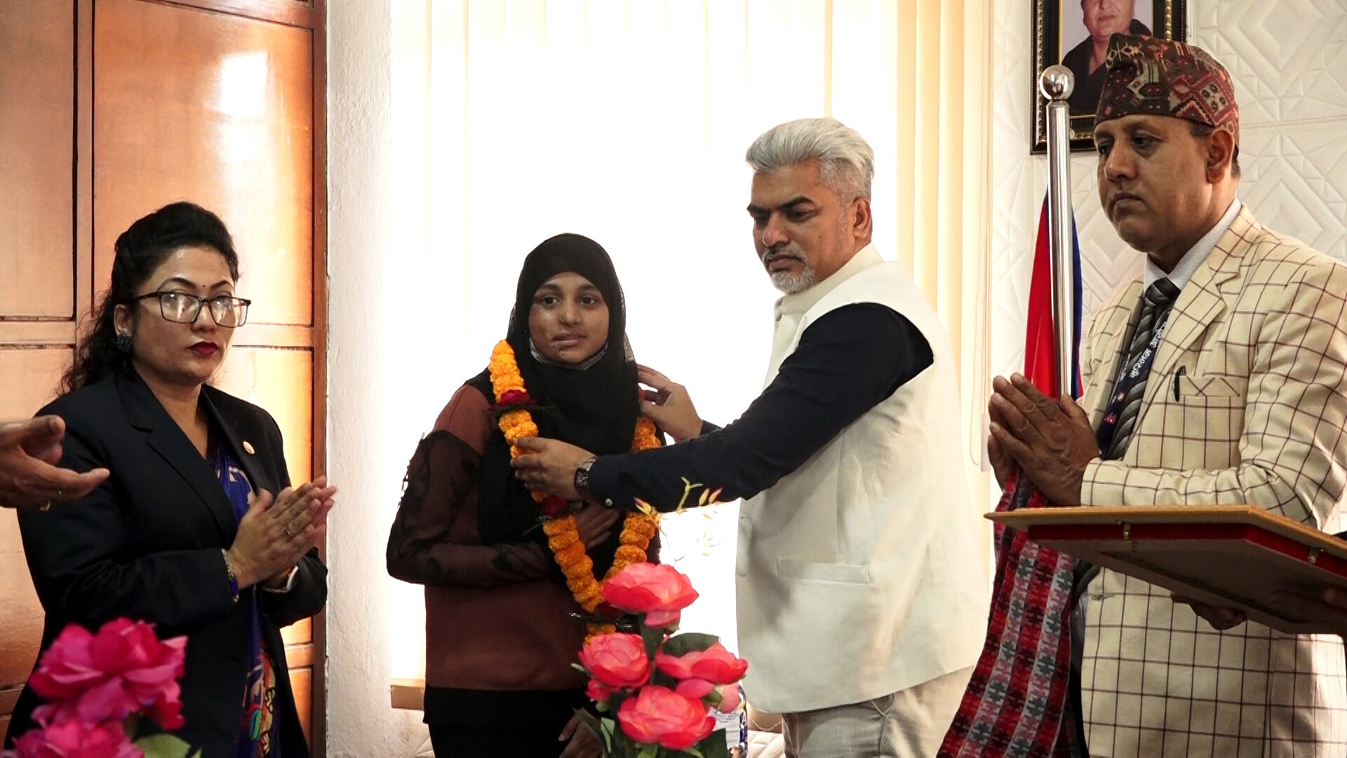 आयोगले आयोजना गर्ने सबै प्रकारका औपचारिक कार्यक्रममा विशेष वक्ताको रुपमा प्रस्तुत गर्ने भएको हो । आज (बुधवार) आयोग कार्यालयमा एसिड पिडित खातुनलाई अध्यक्ष समिम मिया अन्सारीले सम्मान गरे ।