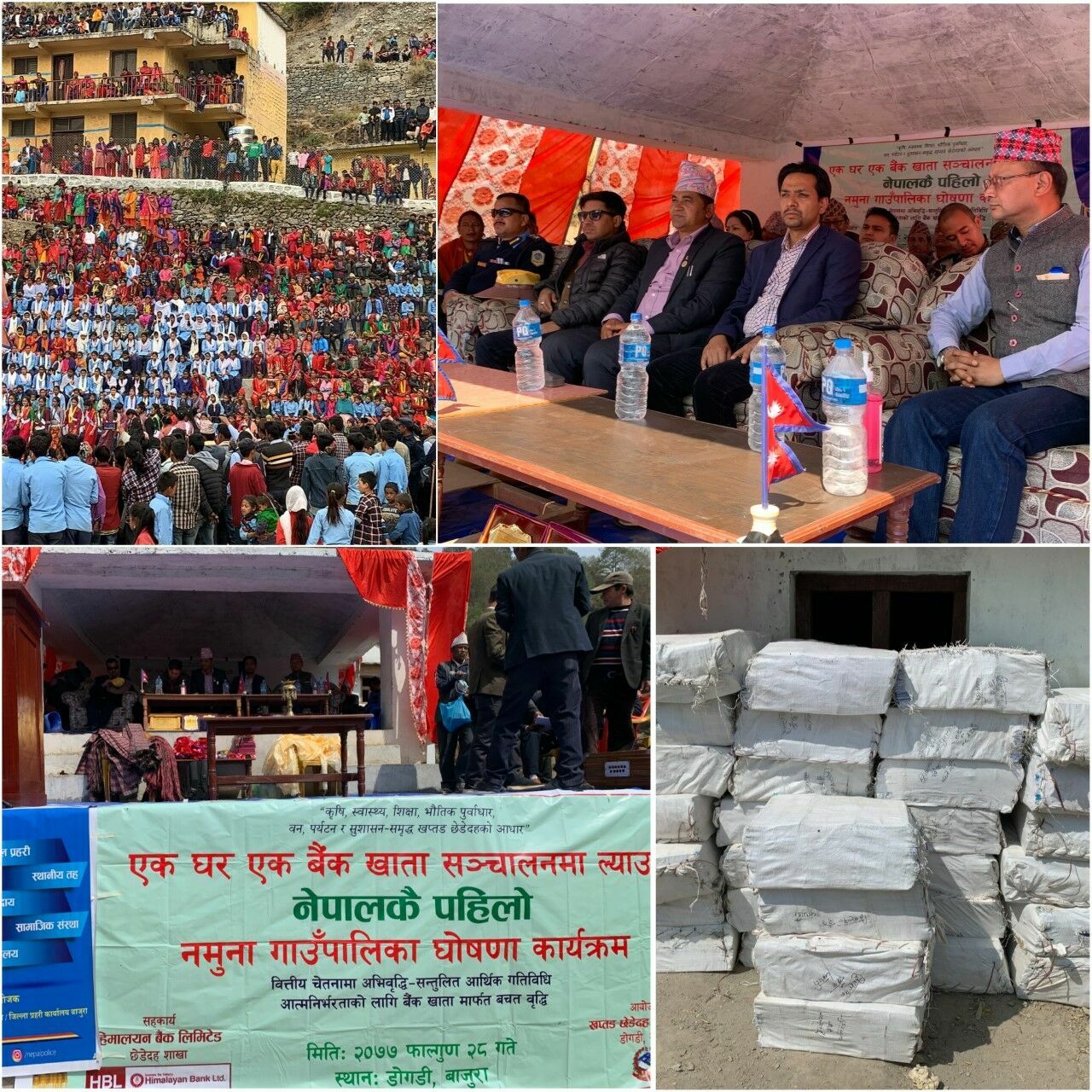 हिमालयन बैंक र खप्तड छेडेदह गाउँपालिकाको सहकार्यमा सञ्चालन भएको “एक घर एक बैंक खाता” अभियान नेपालमै पहिलो पटक सम्पन्न गरेको उपलक्ष्यमा आयोजित नमुना गाउँपालिका घोषणा सभा कार्यक्रममा उक्त समाग्रीहरु विद्यालयहरुका प्रधानाध्यापक तथा विद्यालयका प्रतिनिधिहरुलाई हस्तान्तरण गरिएको हो ।