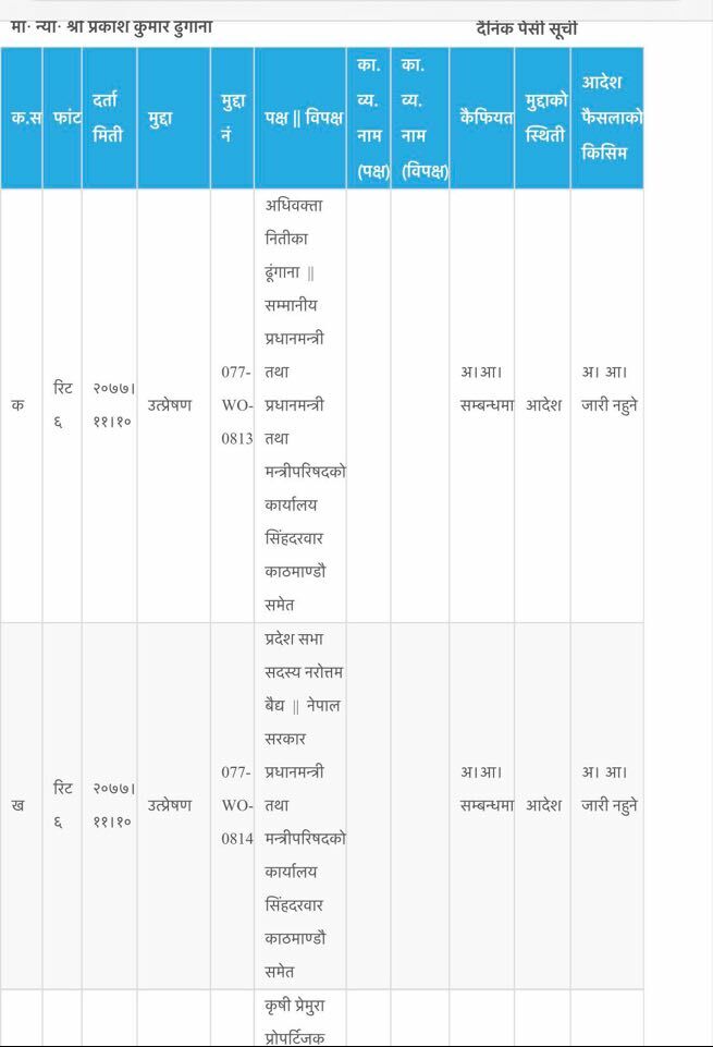 सोमवार प्रधानन्यायाधीश चोलेन्द्र शमशेर जबरा र न्यायाधीश प्रकाशकुमार ढुंगानाको संयुक्त इजलासले ‘अन्तरिम आदेश जारी नहुने’ आदेश गरेका हुन् ।