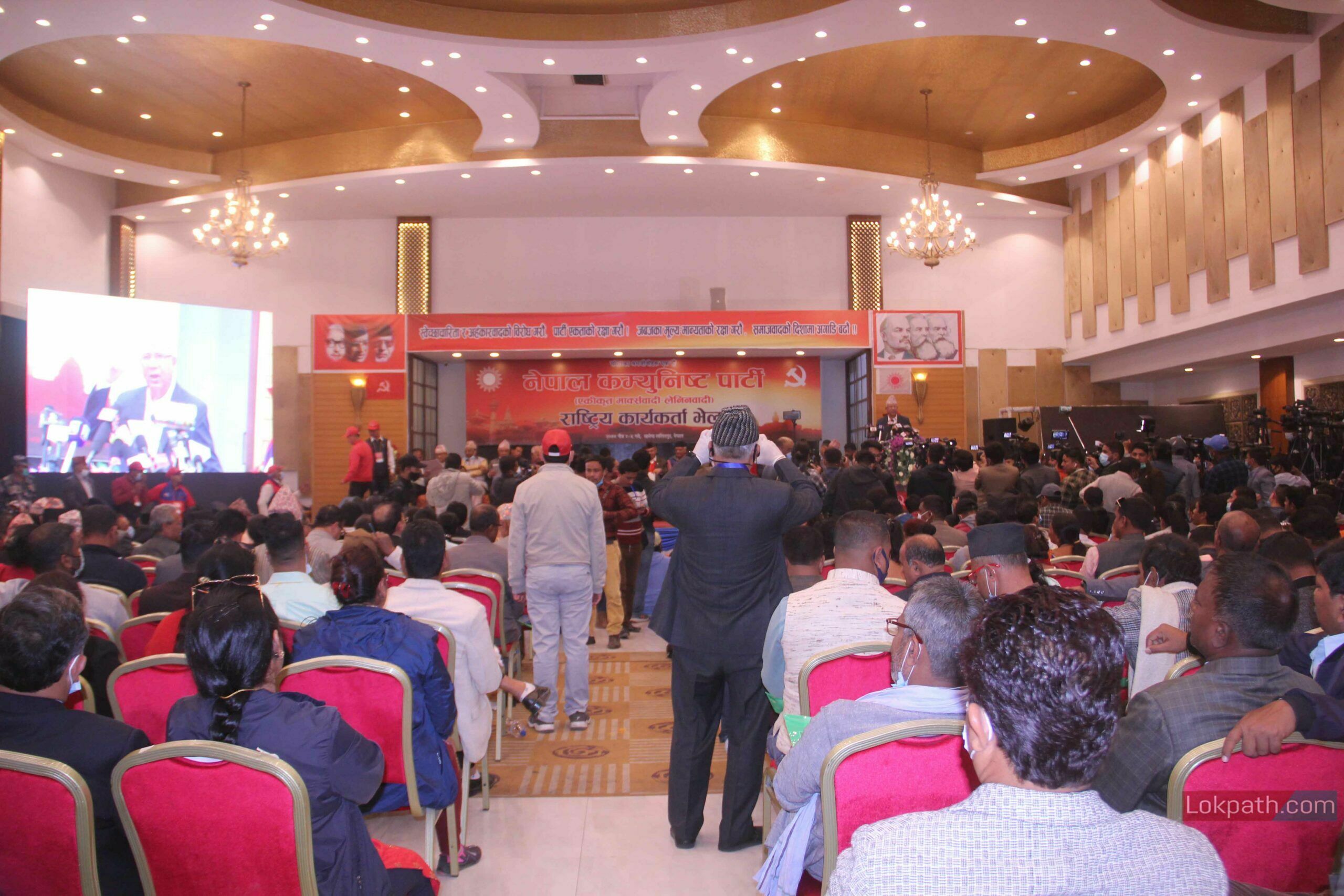 ललितपुरको सानेपास्थित होटल हेरिटेज गार्डेनमा राखिएको भेलालाई कम्युनिष्ट आन्दोलनका अग्रजहरुले पनि साथ दिएका छन् । एमाले अध्यक्ष एवं प्रधानमन्त्री केपी शर्मा ओलीले नेपाल–खनाल पक्षलाई पेलेर जाने रणनीति अख्तियार गरेपछि खनाल–नेपाल पक्षले कार्यकर्ता भेलाको आयोजना गरेका हुन्।