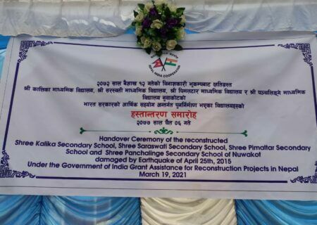 राजदूतावासका प्रेस, सूचना तथा संस्कृति प्रभागका प्रमुख नवीन कुमार र राष्ट्रिय पुनर्निर्माण प्राधिकरणका प्रमुख कार्यकारी अधिकृत सुशील ज्ञवालीले ती विद्यालयहरुको संयुक्त रुपमा उद्घाटन गरेका हुन् ।