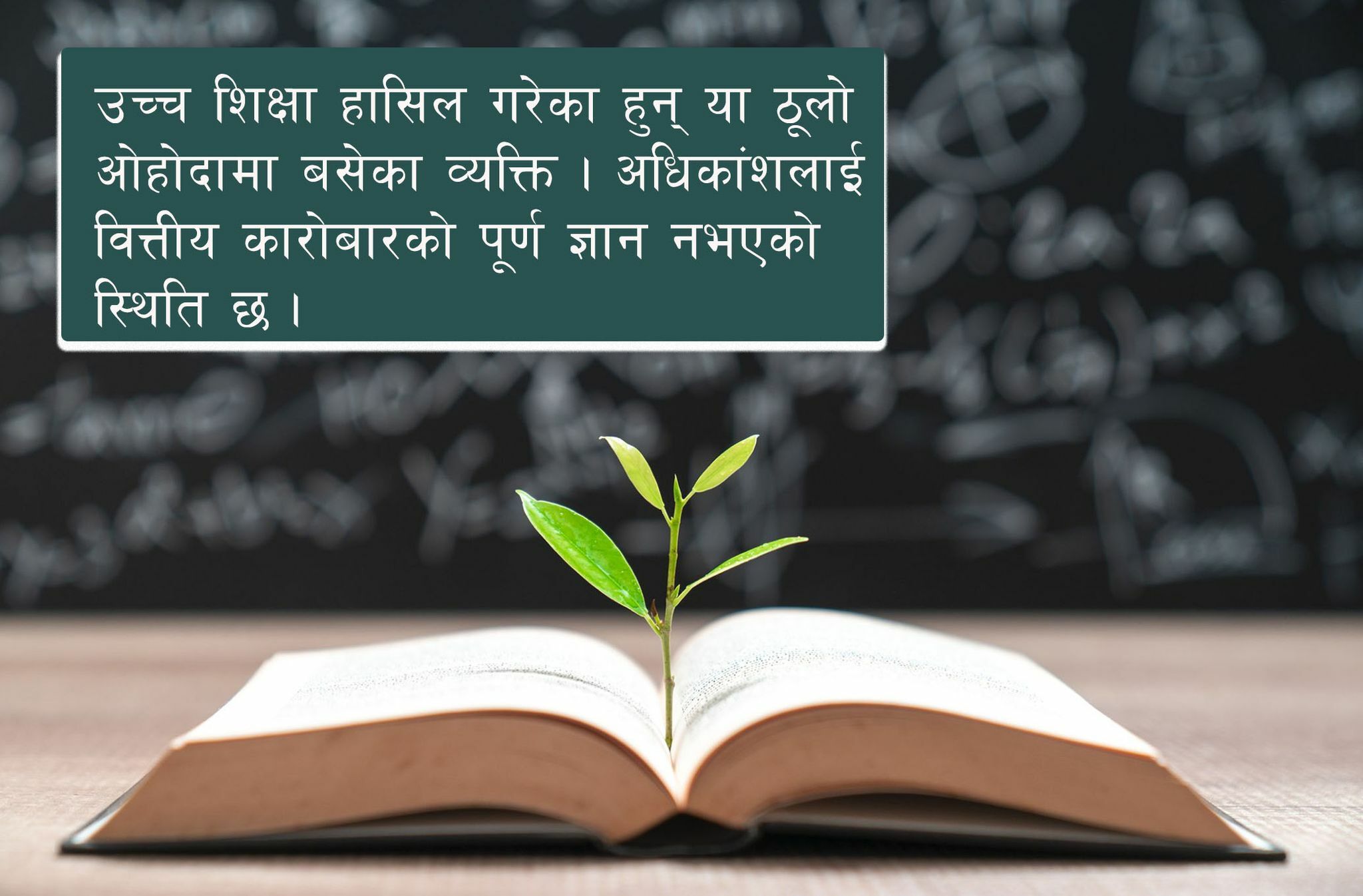 नेपालमा वित्तीय साक्षरता आज सबै स्तरका मानिसहरूलाई अत्यन्त आवश्यक देखिएको छ । उच्च शिक्षा हासिल गरेका ठूला ओहोदाका मानिसमा समेत कतिपय वित्तीय कारोबारको पूर्ण ज्ञान नभएको स्थिति छ । उपयुक्त वित्तीय शिक्षाको अभावमा उचित निर्णय लिन नसक्दा गम्भीर आर्थिक दुर्घटना हुन गई ठूलो वित्तीय क्षति समेत व्यहोर्नुपर्ने र समाजमा नकारात्मक असर पर्ने अवस्था पनि देखिएको छ ।