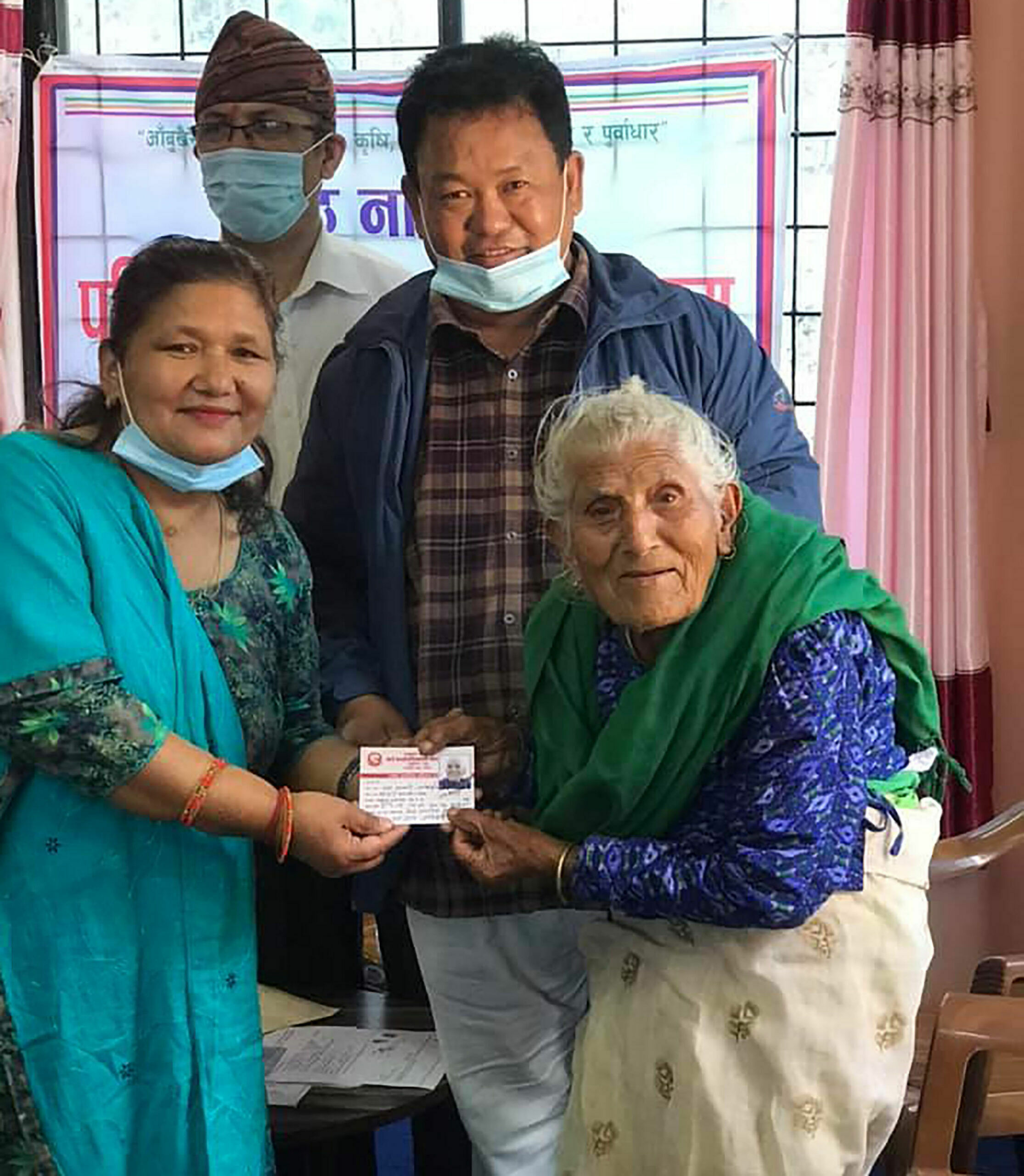 आँबुखैरेनी गाउँपालिका–१ सत्रसयस्थित वडा कार्यालयमा आज (आइतवार) १०० वर्षीया मनकुमारी लामिछानेलाई गाउँपालिकाका उपाध्यक्ष पुष्पादेवी श्रेष्ठले परिचयपत्र प्रदान गरेकी छिन् । विसं १९७६ पुस ५ गते जन्मिएकी लामिछानेले पहिलो पटक ज्येष्ठ नागरिक परिचयपत्र पाउँदा खुशी लागेको बताउनुभयो ।
