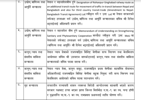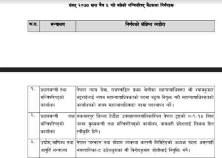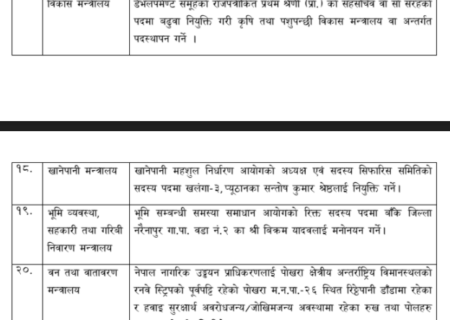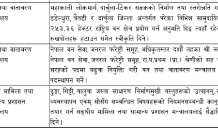 काठमाडौं । सरकारले फागुन २० गतेदेखि चैत ५ गतेसम्म गरेका महत्वपूर्ण निर्णय आज(आइतवार) सार्वजनिक गरेको छ।