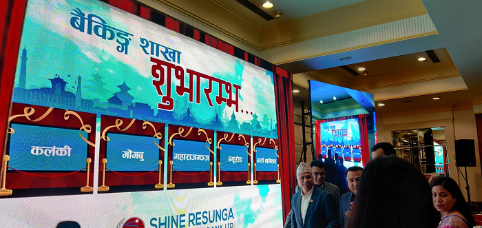 काठमाडौं । लुम्बिनी प्रदेश केन्द्रित भएर कारोबार सञ्चालन गर्दै आएको शाइन रेसुङ्गा डेभलपमेन्ट बैंकले काठमाडौंमा पनि शाखा विस्तार गरेको छ । बैंकले एकैदिन काठमाडौंका विभिन्न ठाउँहरुमा पाँच नयाँ शाखा विस्तार गरेको छ ।