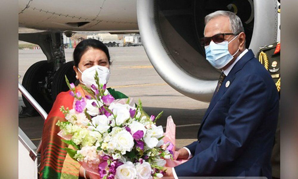 दुई दिने भ्रमणका लागि ढाकामा राष्ट्रपति भण्डारी, समकक्षी हमिदले गरे स्वागत