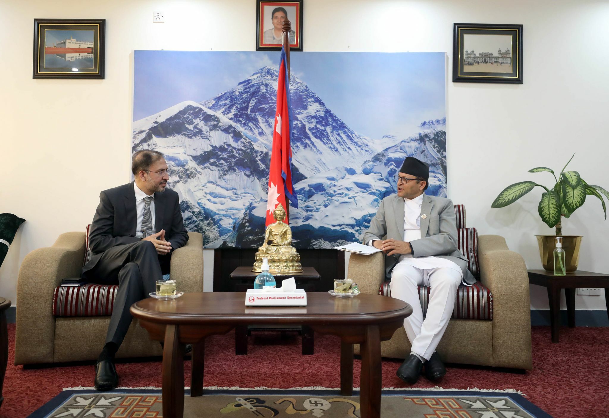 काठमाडौं । राष्ट्रियसभा अध्यक्ष गणेशप्रसाद तिमिल्सिनासँग नेपालका लागि पाकिस्तानका राजदूत सैयद हैदर साहले शिष्टाचार भेटघाट गरेका छन् । सिंहदरबारस्थित अध्यक्ष तिमिल्सिनाको कार्यकक्षमा भएको भेटमा उनीहरुबीच दुई देशबीचका सम्बन्ध र आपसी हितका विषयका केन्द्रित रही विचार विमर्श भएको थियो ।