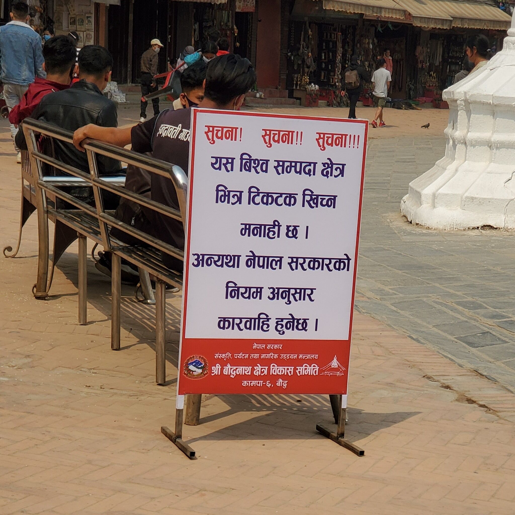 त्यस क्षेत्रको मर्म अनुरुप दैनिकरुपमा टिकटक भिडियो बनाउने संख्या बढ्दा बौद्धनाथ क्षेत्रको धार्मिक एवम् शान्तिपूर्ण वातावरण अनुरुप नभएको, अनावश्यक भिड बढेको धार्मिक आस्थमा खलल पुगेको भन्दै टिकटक बनाउन निषेध गरिएको बौद्धनाथ क्षेत्र विकास समितिले जनाएको छ ।