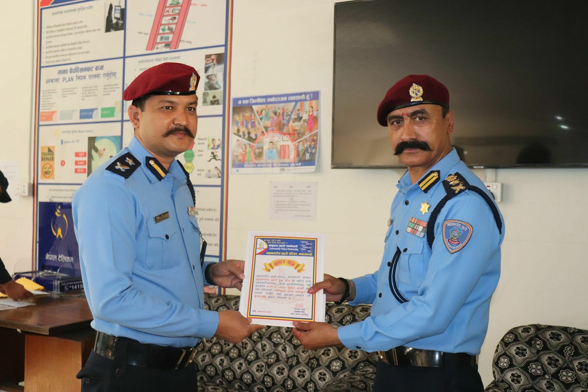 महानगरीय प्रहरी परिसर काठमाडौंले आफ्नो तथा मातहतमा कार्यरत प्रहरी कर्मचारीले आफ्नो कर्तव्य पालनको सिलसिलामा प्रशंसनीय र उत्कृष्ट काम गरेबापत महिना–महिनामा उत्कृष्ट प्रहरी अधिकृतको सम्मान दिँदै आएको छ ।