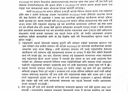 विज्ञप्तिमा पठाओको सेवा शुल्क, पठाओ स्टेशन, राइडरहरुको उचित व्यवस्थापन लगायत विषयमा फैलिएका गलत जानकारी तथा उब्जिएका समस्याहरुलाई सम्बोधन गरिएको छ ।