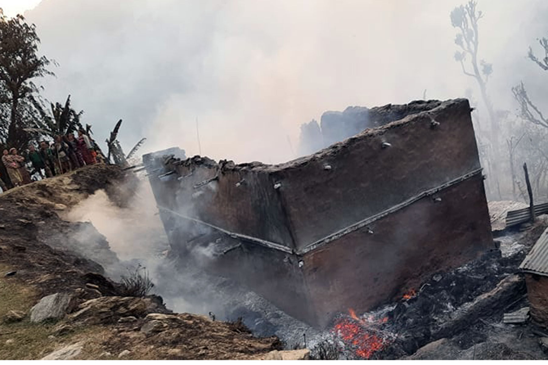 आगालागीबाट हतुवागढी गाउँपालिका–८ का अर्जुन राई, कञ्चन राई, भीमबहादुर राई, शान्तकुमारी राईको घर र कालीबहादुर राईको गोठ जलेको जिल्ला प्रहरीले जनाएको छ ।