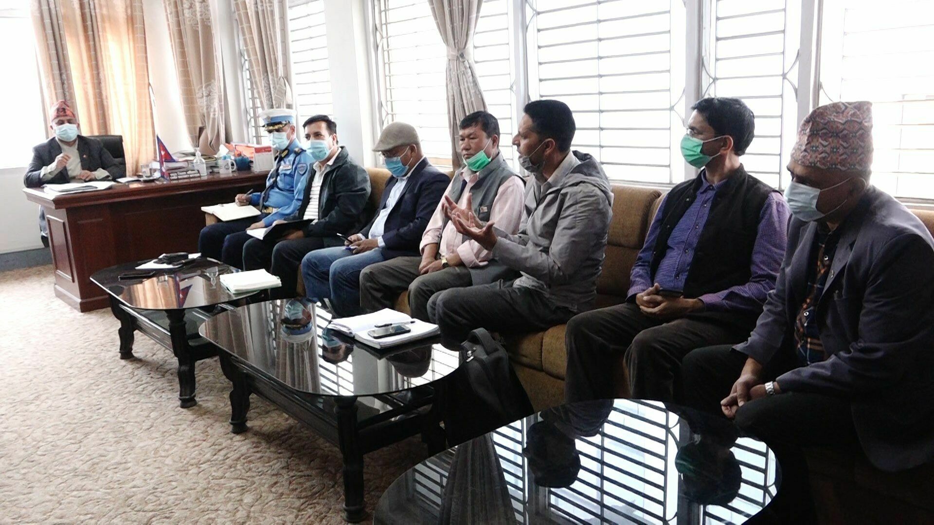 प्रमुख जिल्ला अधिकारी कालीप्रसाद पराजुलीले सार्वजनिक यातायात क्षेत्रमा स्वास्थ्य मापदण्डलाई कडाईका साथ पालना गराउने निर्णय भएको बताए । सार्वजनिक यातायात क्षेत्रमा आजैदेखि लागू हुनेगरी अनिवार्य मास्क लगाउने, सिट क्षमता अनुसार यात्रुहरु राख्ने, भौतिक दुरीलाई व्यवस्थित गर्ने र बसपार्कमा साबुनपानीको व्यवस्था गरी हात धुने व्यवस्था गर्ने, माइकिङ गर्ने, चनचेतना फैलाउने र अनुगमनलाई प्रभावकारी बनाउने निर्णय भएको पनि प्र .जि.अ पराजुलीले बताए ।