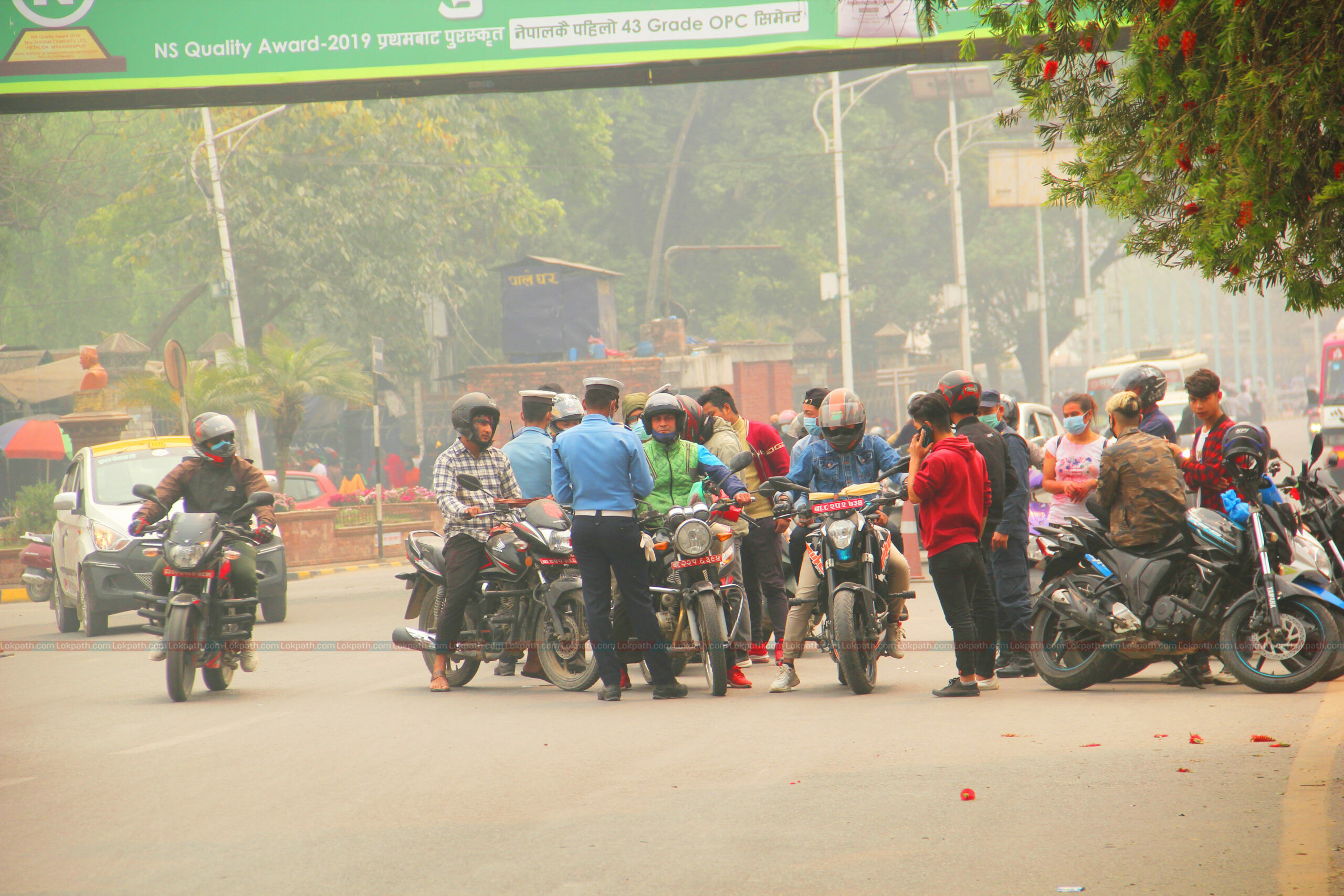 ट्राफिक प्रहरीले अवाञ्छित गतिविधि, दुर्घटना र कोरोना महामारीलाई ध्यानमा राखेर आज बिहानै देखि सवारी चेकिङलाई कडाई गरेको हो । काठमाडौं उपत्यकाका चोकचोकमा ट्राफिक चेकिङ भइरहेको छ । मादक पदार्थ सेवन गरेर सवारी चलाउने, हेल्मेट नलगाउने, क्षमता भन्दा बढी यात्रु बोक्ने लागयतका सवारी चालकलाई कारबाही गरिएको ट्राफिक प्रहरीले बताएको छ ।
