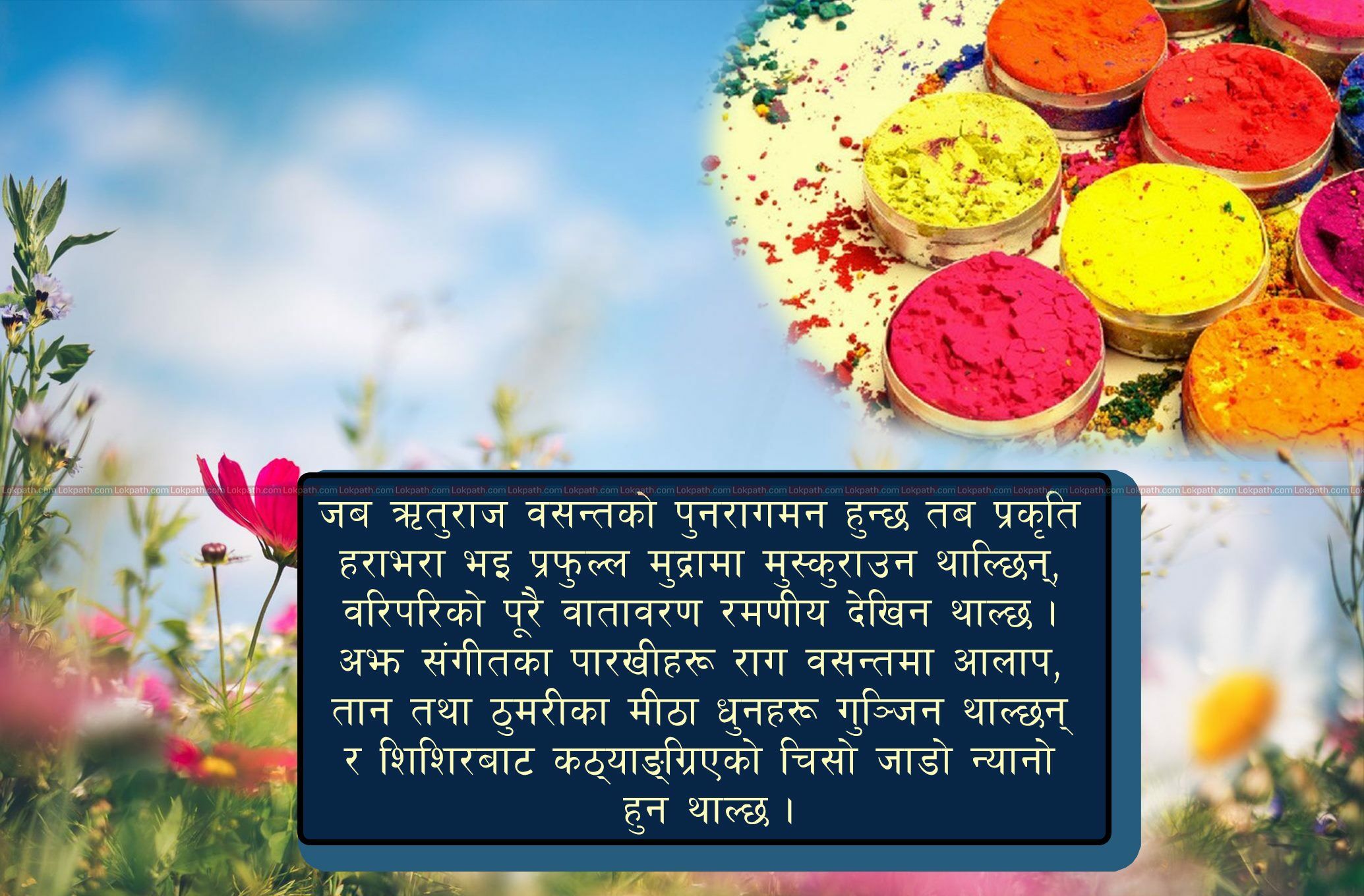 हाम्रा चाडपर्वहरू कुनै स्थानीय स्तरमा सम्पन्न गरिन्छ भने कुनै क्षेत्रीय तथा कुनै राष्ट्रिय स्तरमा नै मनाइन्छ । जब ऋतुराज वसन्तको पुनरागमन हुन्छ, प्रकृति हराभरा भइ प्रफुल्ल मुद्रामा मुस्कुराउन थाल्छिन्, वरिपरिको पूूरै वातावरण रमणीय देखिन थाल्छ । अझ संगीतका पारखीहरू राग वसन्तमा आलाप, तान तथा ठुमरीका मीठा धुनहरू गुञ्जाउन थाल्छन् र शिशिरबाट कठ्याङ्ग्रिएको चिसो जाडो न्यानो हुन थाल्छ, पूर्ण आशा र उमङ्गका साथ नयाँ वर्षका शुभ संकेतहरू देखा पर्न थाल्छन् अनि फाल्गुन शुक्ल अष्टमीदेखि प्रत्येकका घरआँगनमा फागु महोत्सव देखापर्न थाल्छ ।