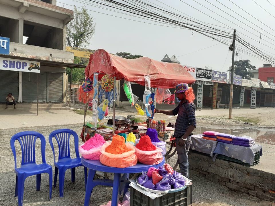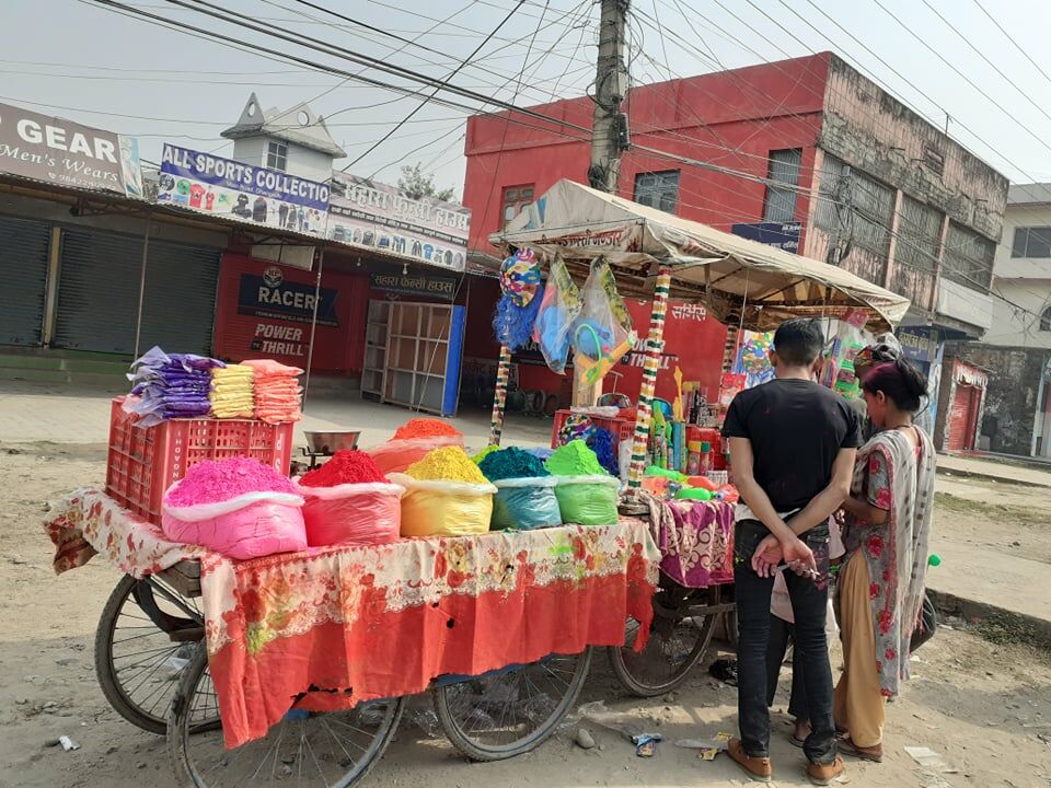 कोरोना महामारीका कारण गत वर्ष र यस वर्ष बजार र सडकमा पनि ठूलो समूहमा भेला भएर होली मनाउनेहरु कमै मात्रामा देखिन्छन् ।