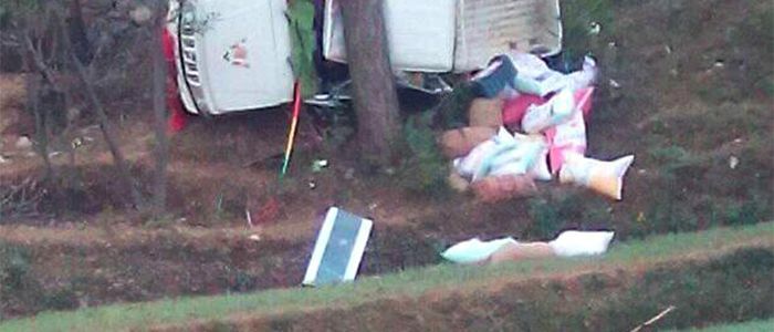 फलफूल बोकेको जीप सडक छेउमै पल्टेको र रुखको आडले रोकिँदा क्षति हुन नपाएको प्रहरीले जनाएको छ। जीप चालक दार्चुलाको अपिहिमाल ५ का वीरेन्द्र धामी फरार छन्। उनको खोजी भइरहेको प्रहरीले बताइएको छ।