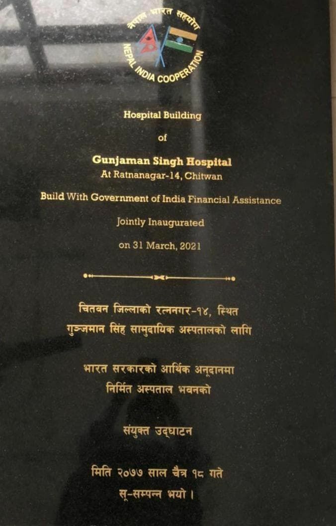 काठमाडौं । भारत सरकारको सहयोगमा चितवनमा निर्माण गरिएको अस्पतालको उद्घाटन भएको छ ।