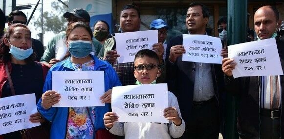 प्रजातान्त्रिक विचार समाज नेपाल, मानव अधिकार सङ्गठन र न्यायका लागि मानवअधिकार सञ्जालले आज (शुक्रवार) विहान संयुक्त रुपमा विरोध प्रदर्शन गरेका हुन् । म्यानमारमा भएको नरसंहारको विरुद्धमा उत्रिएका मानवअधिकारकर्मीहरुले भारत र चीनले समेत दमनको मौन समर्थन दिएको भन्दै विरोध जनाएका छन् ।