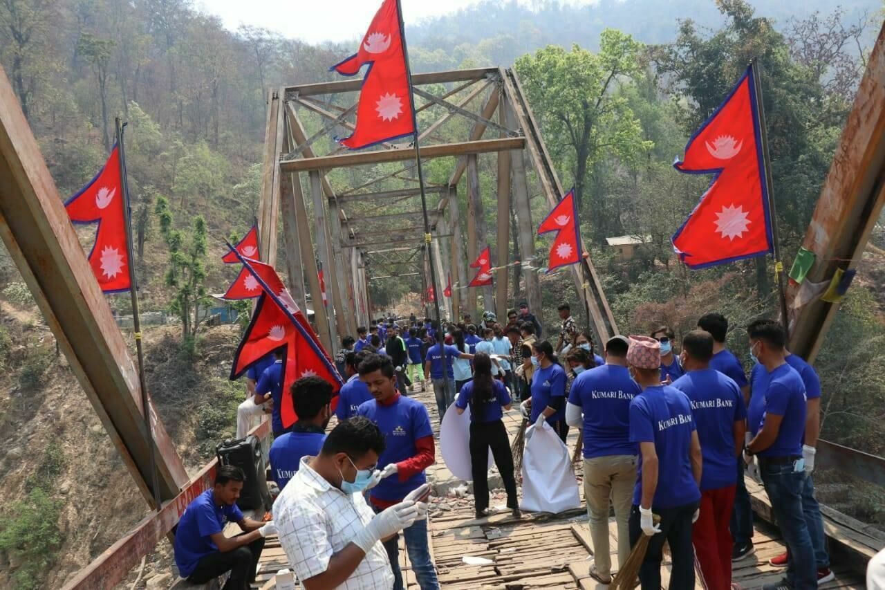 टिकटकले ‘भाइरल’ बनेको काठे पुल राष्ट्रिय झण्डाले सजियो