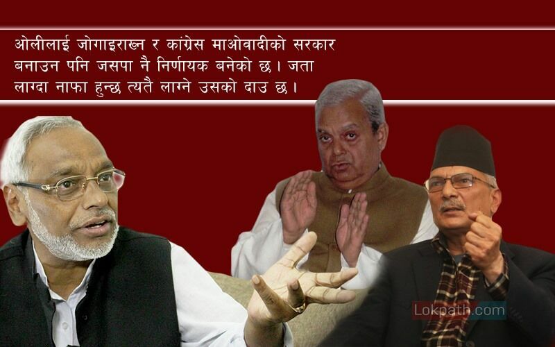 प्रमुख प्रतिपक्षी दल नेपाली कांग्रेसको गत शुक्रबार बसेकोे केन्द्रीय कार्यसमिति बैठकले प्रधानमन्त्री केपी शर्मा ओलीको राजीनामा माग गर्दै आफ्नै नेतृत्वमा सरकार बनाउने निर्णय गरिसकेको छ । तर जसपा भने अझै अनिर्णित छ । गत फागुन २३ को सर्वाेच्च अदालतको फैसलाले नेकपा एमाले र माओवादी केन्द्रलाई पूर्ववत अवस्थामा फर्काएपछि दलहरु सत्ता समीकरणको कसरतमा लागेका हुन् । अहिले प्रधानमन्त्री केपी शर्मा ओलीले एमाले संसदीय दलको नेताको हैसियतमा माओवादी केन्द्रको समर्थनमा सरकारको नेतृत्व गरिरहेका छन् । ओलीको विकल्पमा अर्काे सरकार बन्ने अवस्था हाल सम्म नदेखिँदा उसले समर्थन फिर्ता लिन सकेको छैन । माओवादी ओलीलाई सत्ताबाट चाँडो ओराल्नुपर्छ भन्नेमा छ । एमालेले माओवादी नेतृत्वमा बनेको कर्णाली प्रदेशका मुख्य मन्त्री महेन्द्र बहादुर शाहीलाई दिएको समर्थन फिर्ता लिएपनि माओवादीले भने केन्द्रमा ओलीलाइ दिएको समर्थन फिर्ता लिन सकेको छैन । कारण जसपाले के गर्छ भन्ने नै हो । किनकि समर्थन फिर्ता लिने बित्तिकै फेरि ओलीले प्रतिनिधि सभा विघटन गर्छनकि भन्ने डर माओवादीको छ । फागुन २३ यता संसदमा कुनै पनि दलको बहुमत छैन । तत्कालिन नेकपा, एमाले र माओवादी केन्द्रका रुपमा पहिलाकै अवस्थामा फर्किएपछि कुनै दलको पनि बहुमत छैन । ठूलो दलका रुपमा भने नेकपा एमाले रहेको छ । त्यसकारण पनि राजनीतिक दलहरु १ महिना यता सत्ता फेरबदलको कसरतमा लागेका हुन् । यसै अवस्थामा जसपा प्रधानमन्त्री ओली वा कांग्रेस र माओवादी केन्द्रसँग मिल्ने भन्ने दोधारमा रहेको छ ।