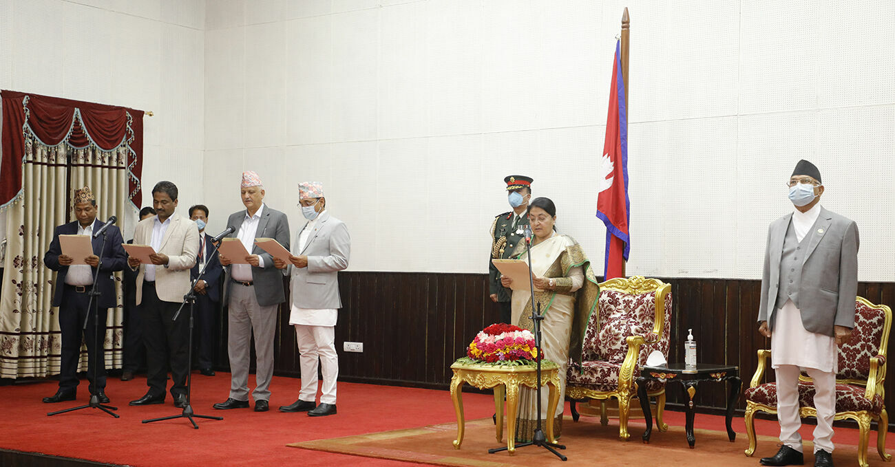 रायमाझीले ऊर्जा, साहले सहरी विकास, भट्टले उद्योग, वाणिज्य तथा आपूर्ति र चौधरीले श्रम, रोजगार तथा सामाजिक सुरक्षा मन्त्रालयको जिम्मेवारी सम्हाल्दै आएका थिए । उनीहरुलाई यसअघिकै मन्त्रालय सम्हाल्ने गरी पुनर्नियुक्ति गरेर सपथग्रहण गराइएको हो ।