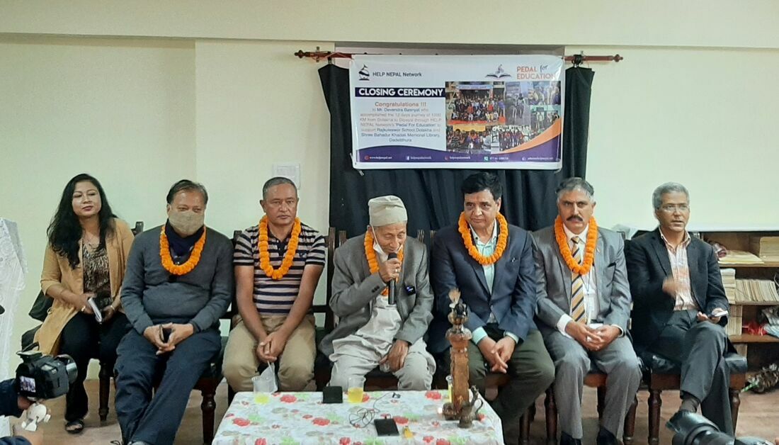 हेल्प नेपालका अध्यक्ष अरुणसिंह बस्नेतले यस पटकलाई परोपकारी साइकल यात्रा समापन भएको बताउँदै १२ सय किलोमिटरको साहसिक तथा एकल यात्रा गर्ने देवेन्द्रको प्रशंसा गरे । सो अवसरमा हेल्प नेपालका संस्थापक अध्यक्ष रवीन्द्र मिश्र, संस्थाका सल्लाहकारहरू शङ्कर कोइराला, विजय राजभण्डारी, साइकल यात्री देवेन्द्र र संस्थाकी सचिव लता घिमिरेले आ–आफ्नो धारणा राखेका थिए ।