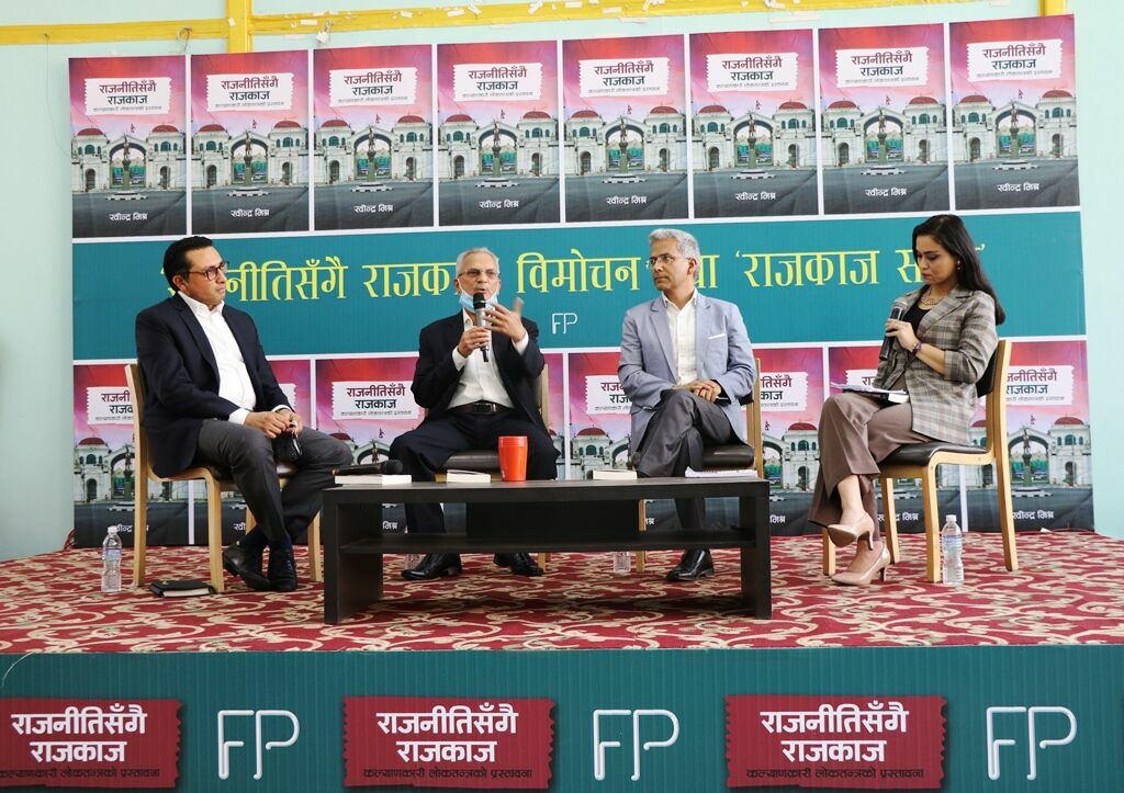नयाँ बानेश्वरस्थित काठमाडौं ब्याङ्क्वेटमा शनिबार पूर्वप्रधानमन्त्री डा. बाबुराम भट्टराई, अर्थशास्त्री स्वर्णिम वाग्ले र लेखक मिश्रसँग पत्रकार समा थापाले ‘राजकाज संवाद’समेत गरिन् । सोही अवसरमा वक्ताहरूले पुस्तक लोकार्पण गरेका हुन् ।