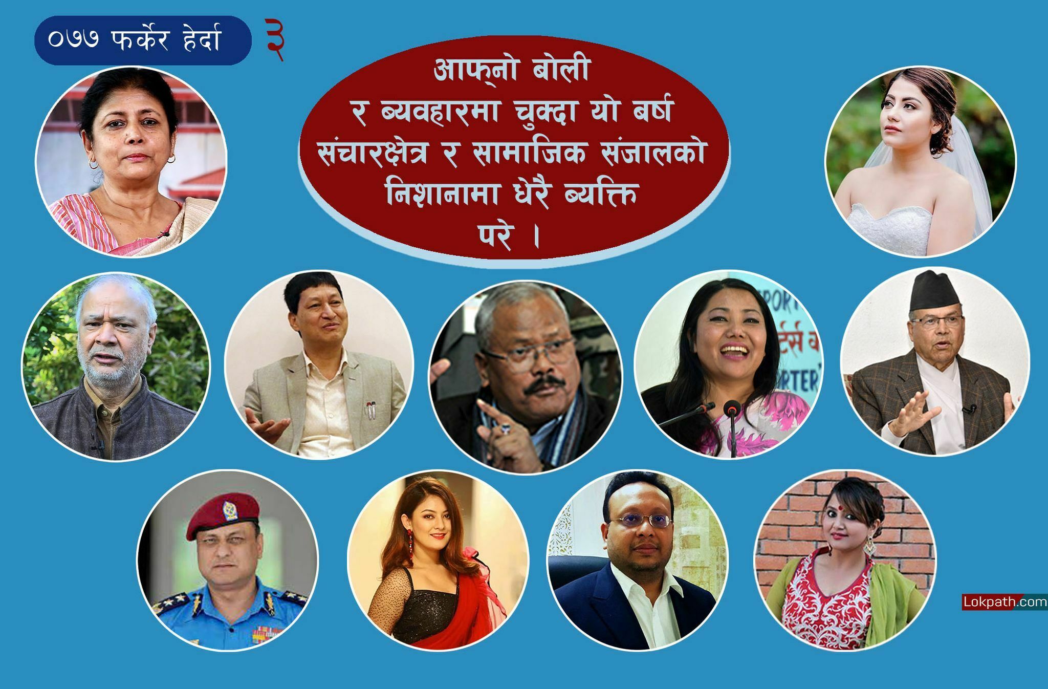 कतिपय कामले गर्दा त कतिपय आफ्नो गलत अभिब्यक्तिले गर्दा विवादमा तानिए । संचारक्षेत्रले उनीहरुका गलत कर्मलाई सार्वजनिक गरिदियो । सामाजिक संजालमा उनीहरु आलोचित बने । हाम्रो स्मरणमा अझै ताजै रहेका ती ब्यक्तिहरु थिए,