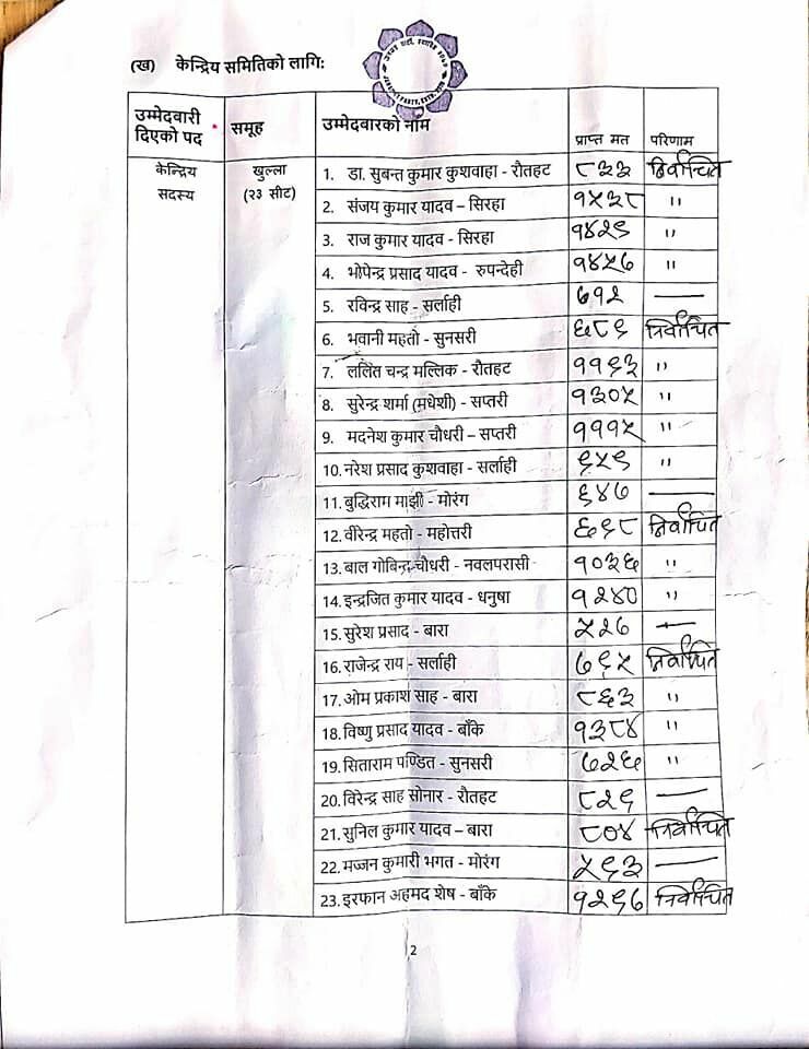 त्यस्तै २३ जना केन्द्रीय सदस्यहरु निर्वाचित भएको जानकारी दिइएको छ ।