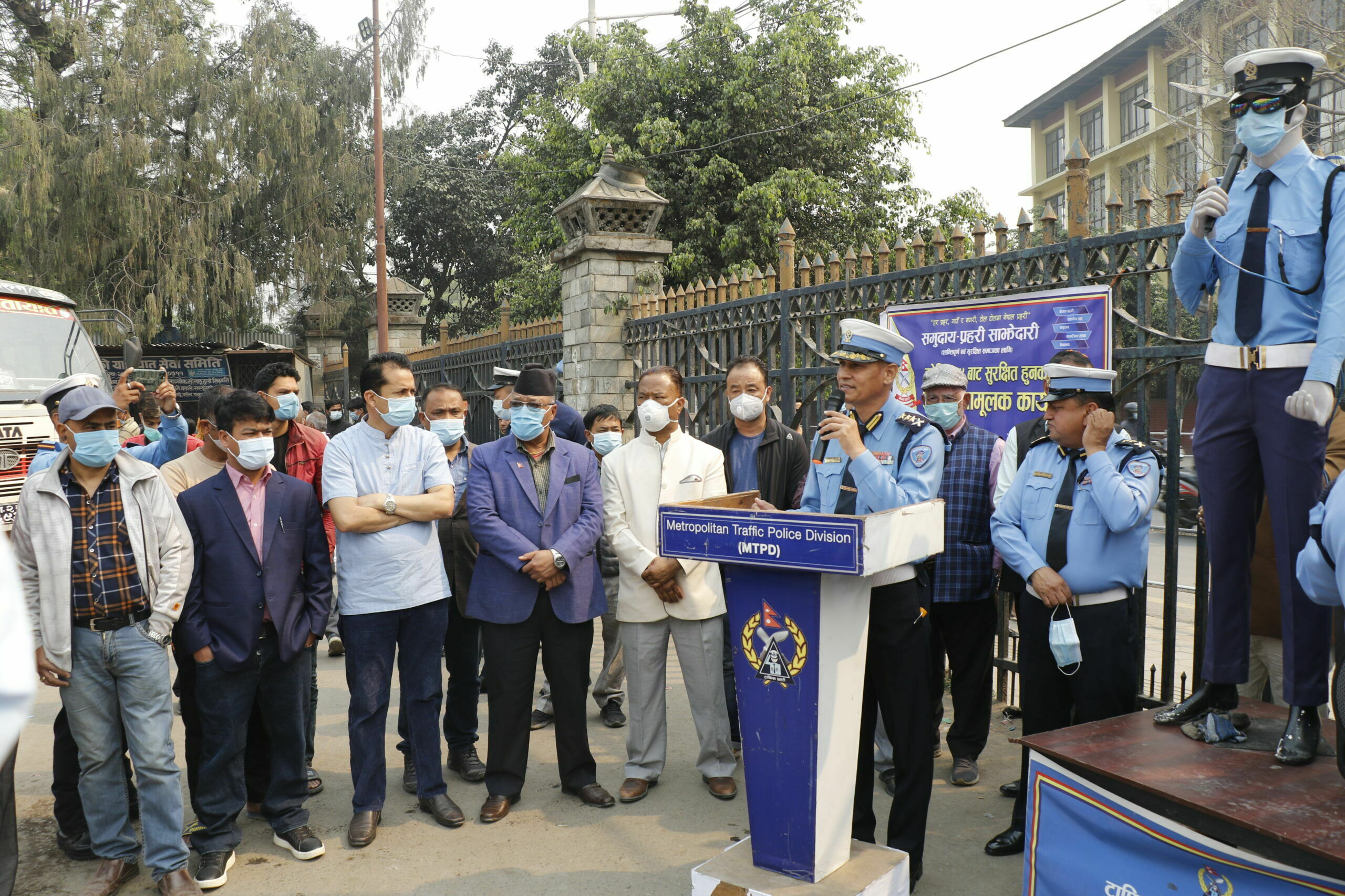उक्त कार्यक्रममा बोल्दै ट्राफिक महाशाखाका प्रमुख प्रहरी बरिष्ठ उपरीक्षक जनक भट्टराईले विश्वमा नै माहामारीको रूपमा फैलिरहेको कोभिड १९ विरूद्ध समयमै सजगता र सचेतना फैलाउन यस जनचेतनामूलक अभियान आज सोमवारदेखि शुरूवात गरिएको बताए । उनले कोभिड १९ बाट यातायात क्षेत्र उच्च जोखिममा रहेकोले वेलैमा सुरक्षाका सावधानी अपनाएर मात्र चलायमान गराउनुपर्ने जोड दिए ।