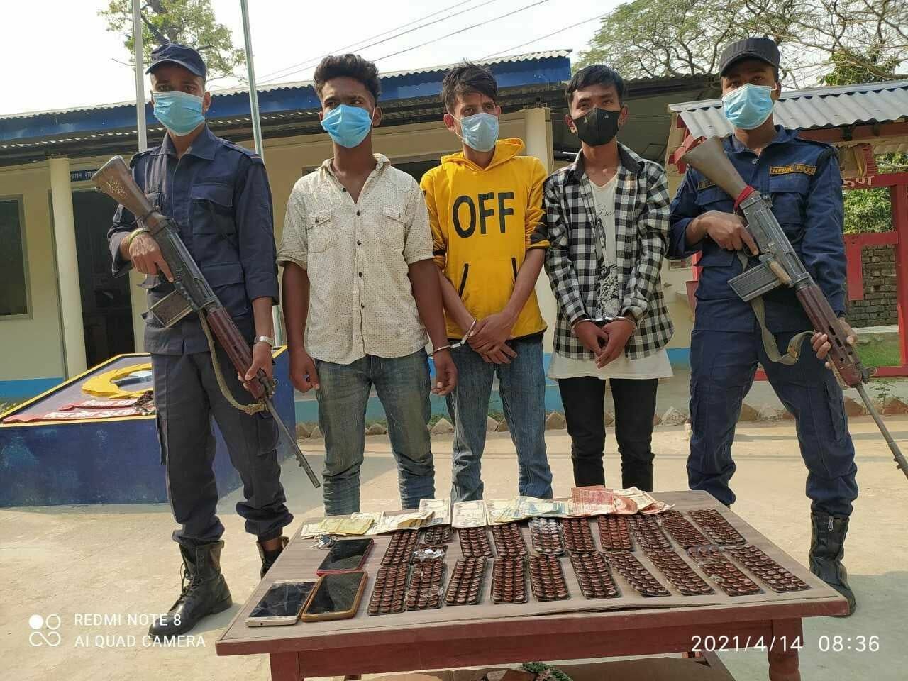 मंगलवार(हिजो) दिउँसो साढे ३ बजे को २ ह ३३९६ नम्बरको अटोमा आईरहेका तीनै जनालाई नियन्त्रणमा लिई चेकजाँच गर्दा उनीहरुले अटोको सिट मुनि लुकाई राखेको ५८८ चक्की नाईट्राभेट लागूऔषध फेला पारी बरामद गरिएको ईलाका प्रहरी कार्यालय पथरीले जनाएको छ ।