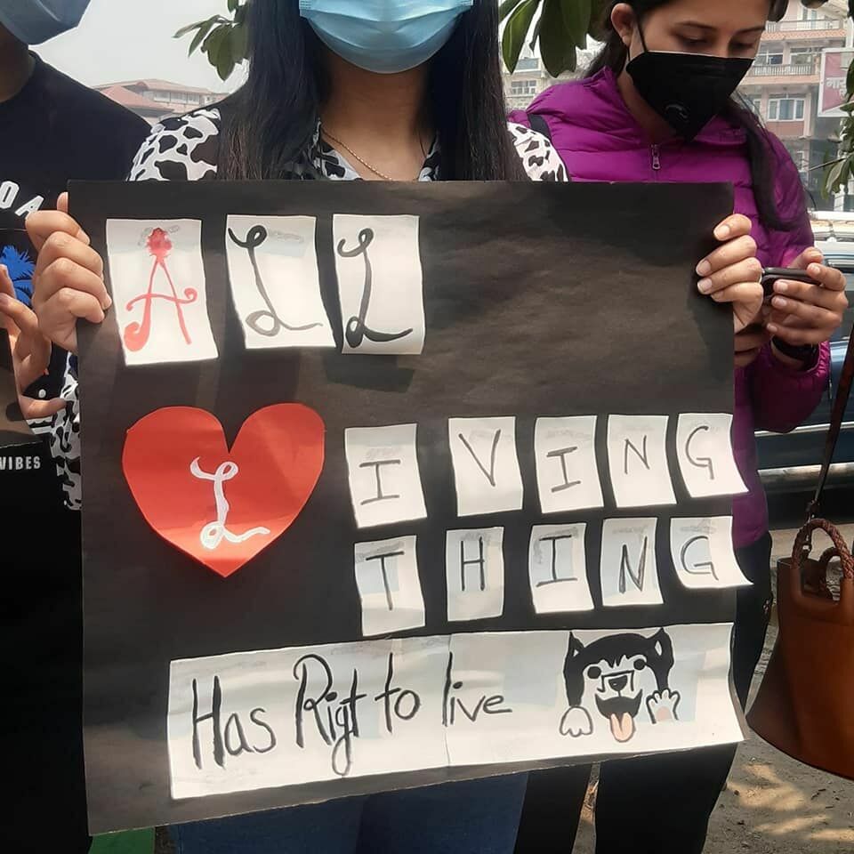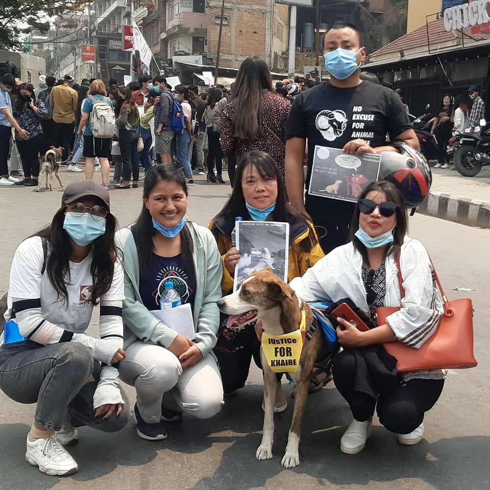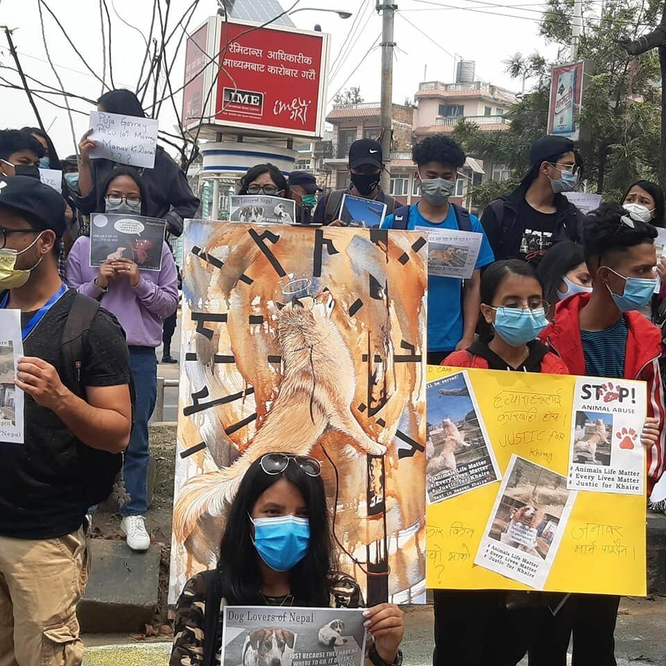 प्रदर्शनमा पुगेका पशु अधिकारकर्मी तथा अभियानकर्ताहरुले ‘पशुलाई घृणा होइन, करुणा, जस्टिस फर खैरे, स्टप एनिमल एबियूस, यहाँ मानव नै दानव लगायत नारा लेखिएको पम्प्लेट बोकेका थिए ।