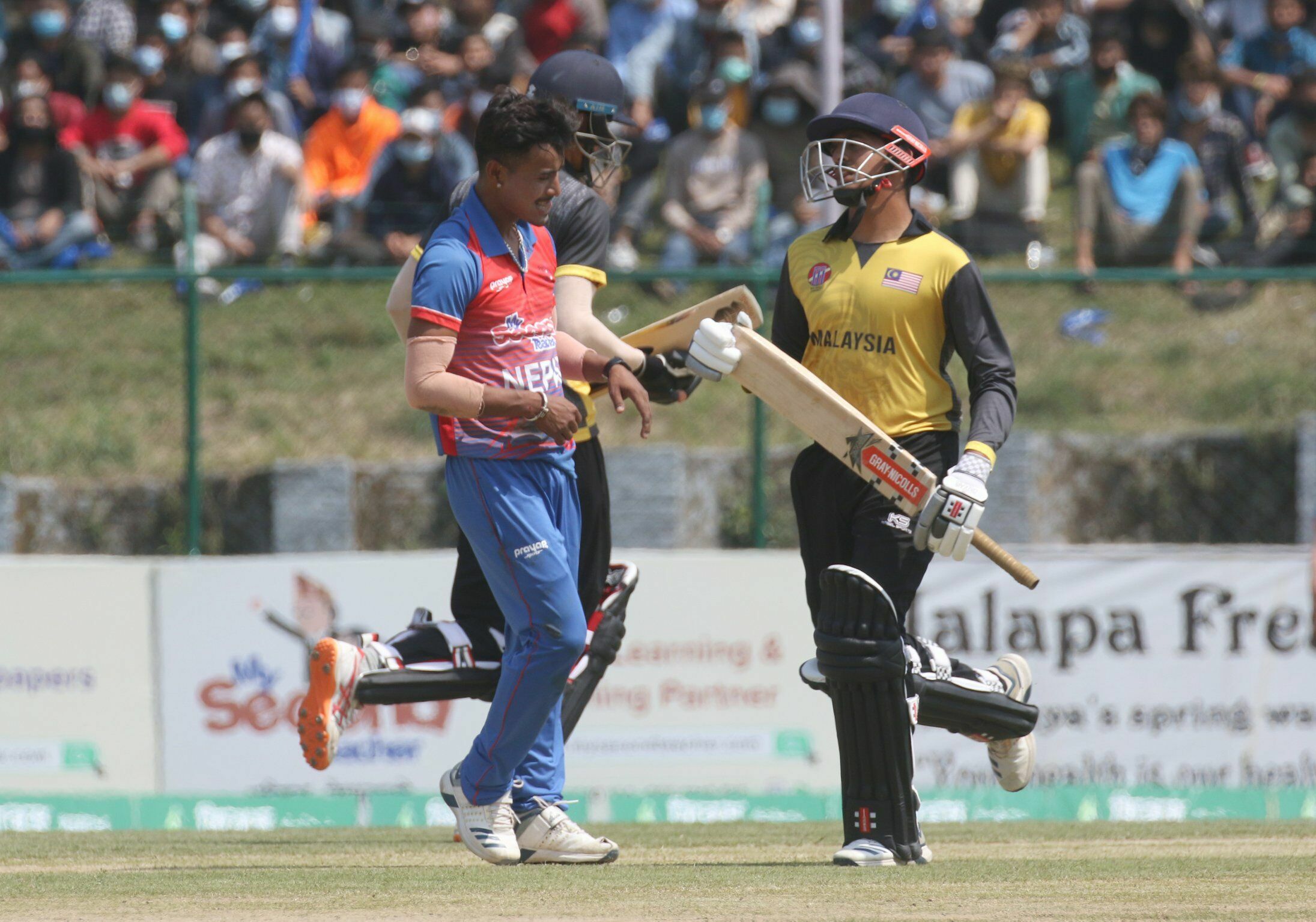 नेपालको उत्कृष्ट बलिङको अगाडि मलेसियाका ८ खेलाडीले दोहोरो अंकमा रन बनाउन सकेनन्।