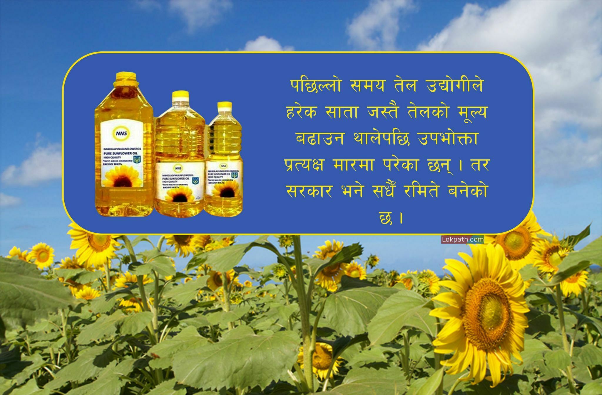 सरकारको फितलो अनुगमनकोे फाइदा उठाउँदै उद्योगी तथा व्यवसायीले पटक पटक तेलको मूल्य वृद्धि गरेर बजारमा ब्रम्हलुट मच्चाएका छन् । गत जेठमा प्रतिलिटर १ सय ६० रुपैयाँ रहेको सनफलवर तेल अहिले २ सय ५० रुपैँया भन्दा बढी पुगेको छ । त्यस्तै, १ सय ५५ रुपैयाँ प्रतिलिटर रहेको भटमासको तेल अहिले २ सय ४० रुपैयाँ पुगेको छ ।