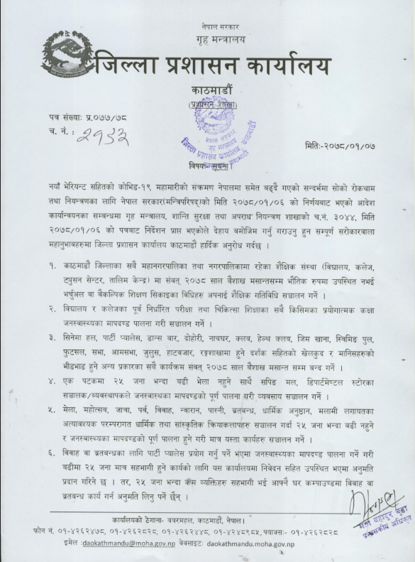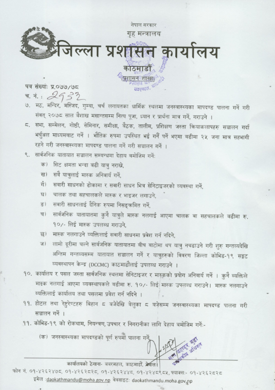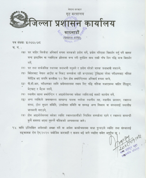 काठमाडौं जिल्ला प्रशासनको १३ बुँदे निर्देशन, पालना नगरे कारवाही