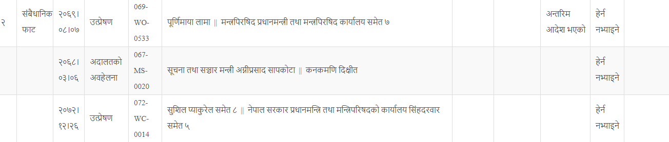 प्रधानन्यायाधीस चोलेन्द्र शमशेर राणाको अध्यक्षतामा रहेको संवैधानिक इजलासले उक्त मुद्दा आजको लागि हेर्न नभ्याइनेमा राखेको हो ।