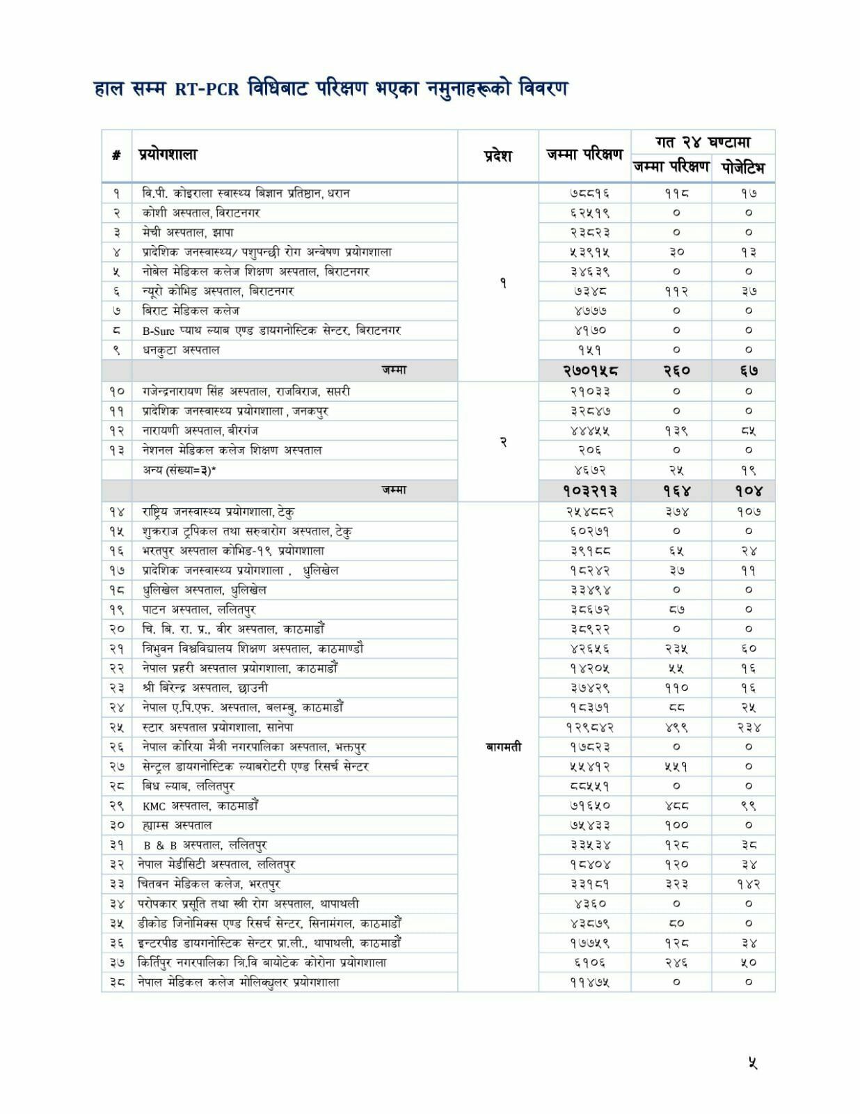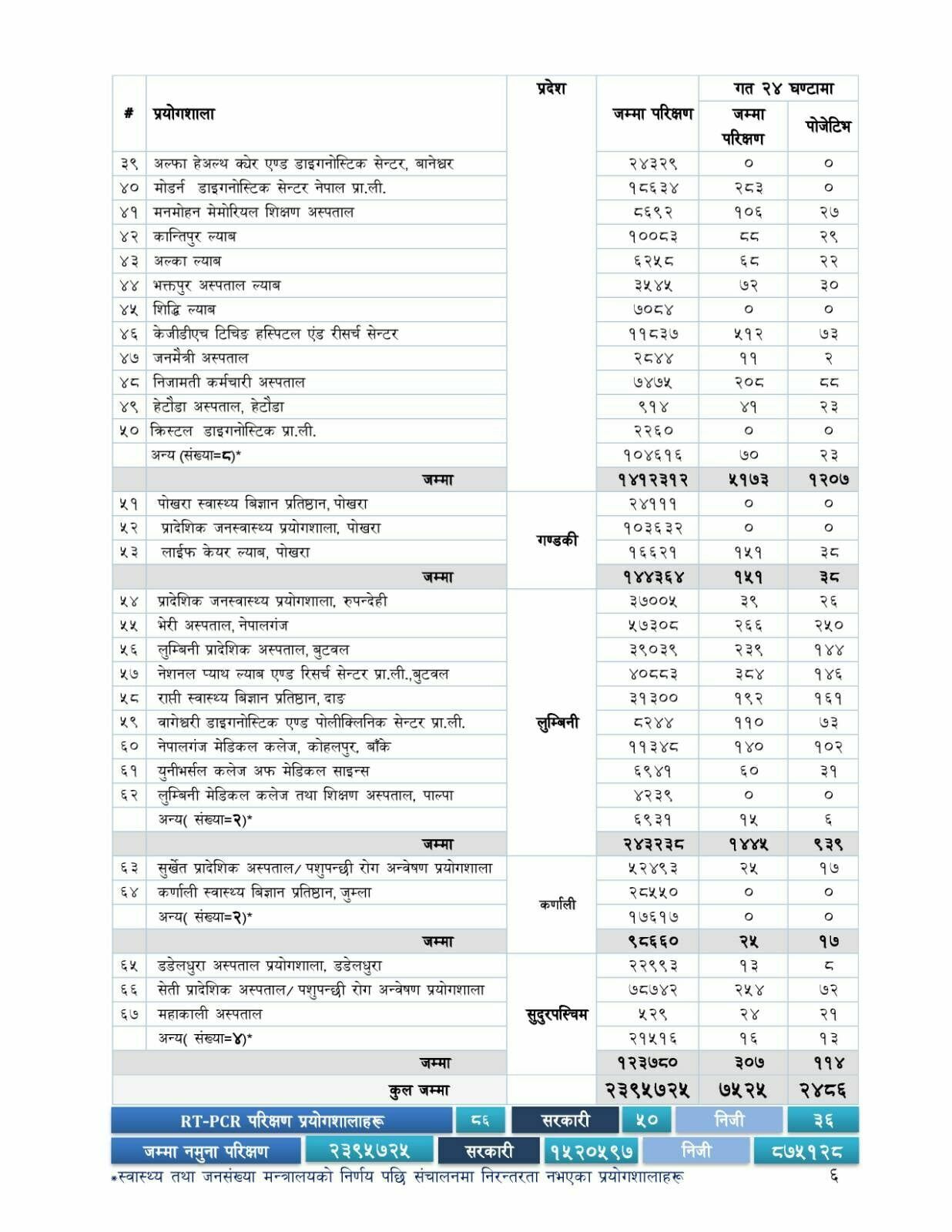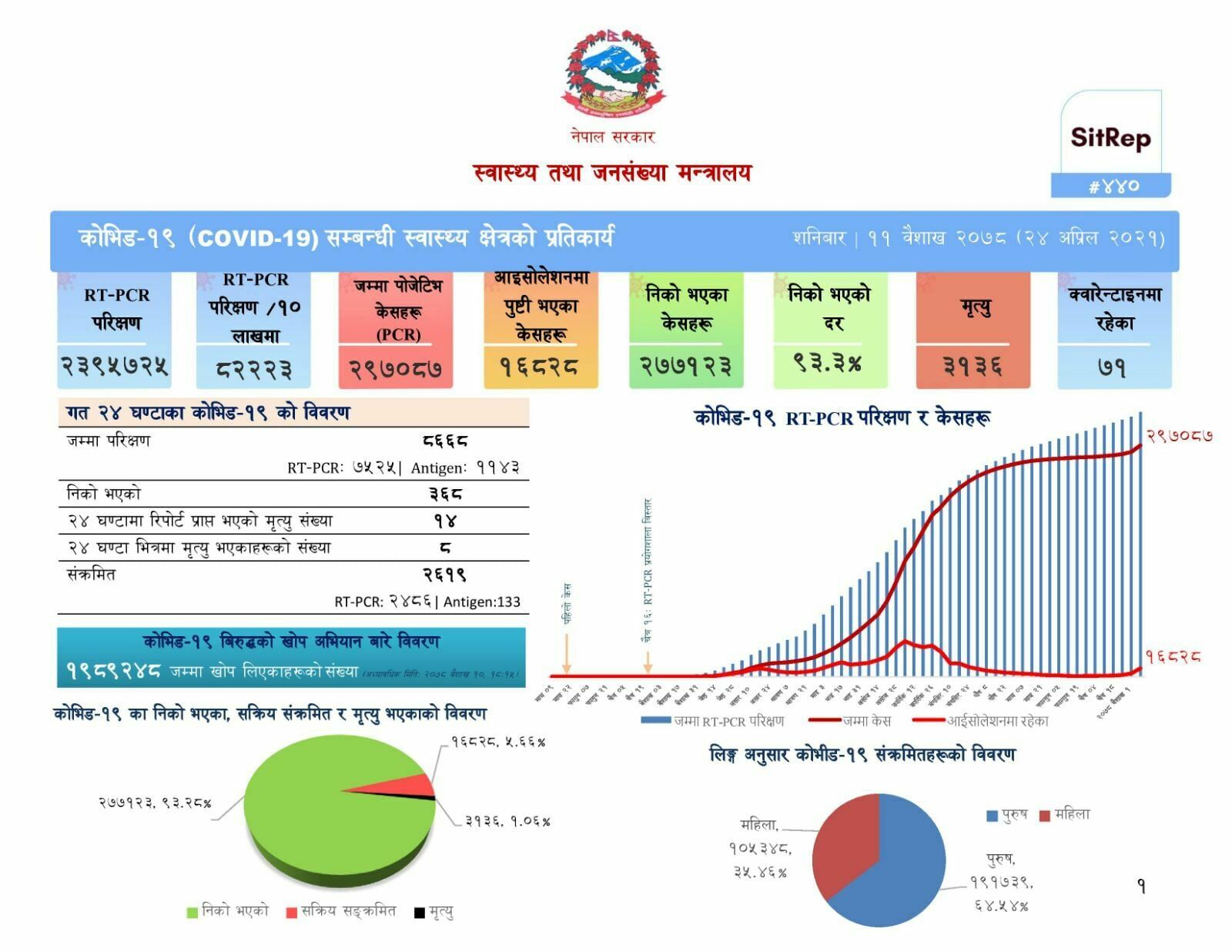 काठमाडौं । नेपालमा पछिल्लो २४ घण्टामा २६ सय बढीमा कोरोना संक्रमण पुष्टि भएको छ ।