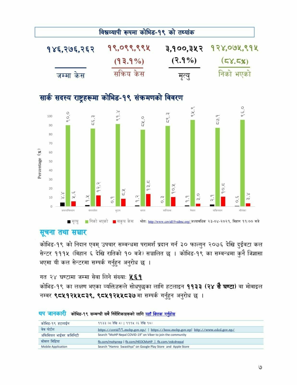 स्वास्थ्य तथा जनसंख्या मन्त्रालयले दिएको जानकारी अनुसार पछिल्लो २४ घण्टामा देशभर २ हजार ६ सय १९ जनामा कोरोना संक्रमण पुष्टि भएको हो ।