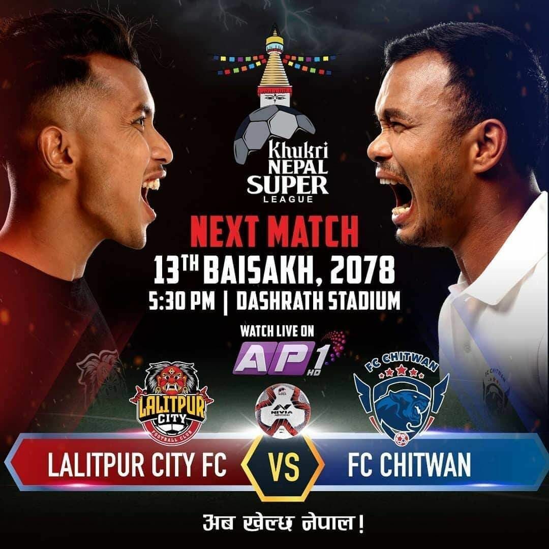 यस लिगमा आफ्नो पहिलो खेल खेल्न गइरहेको एफसी चितवनले आज साँझ ५ः३० बजे दशरथ रंगशालामा ललितपुर सिटी एफसीसँग प्रतिस्पर्धा गर्दै छ ।