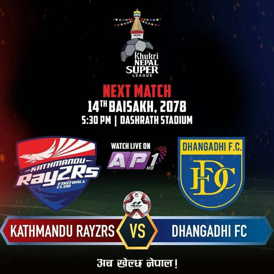 दशरथ रंगशालामा आज साँझ ५ः३० बजे शुरु हुने खेलमा काठमाडौं रेजर्स र धनगढी एफसी आमने सामने हुँदै छन्।