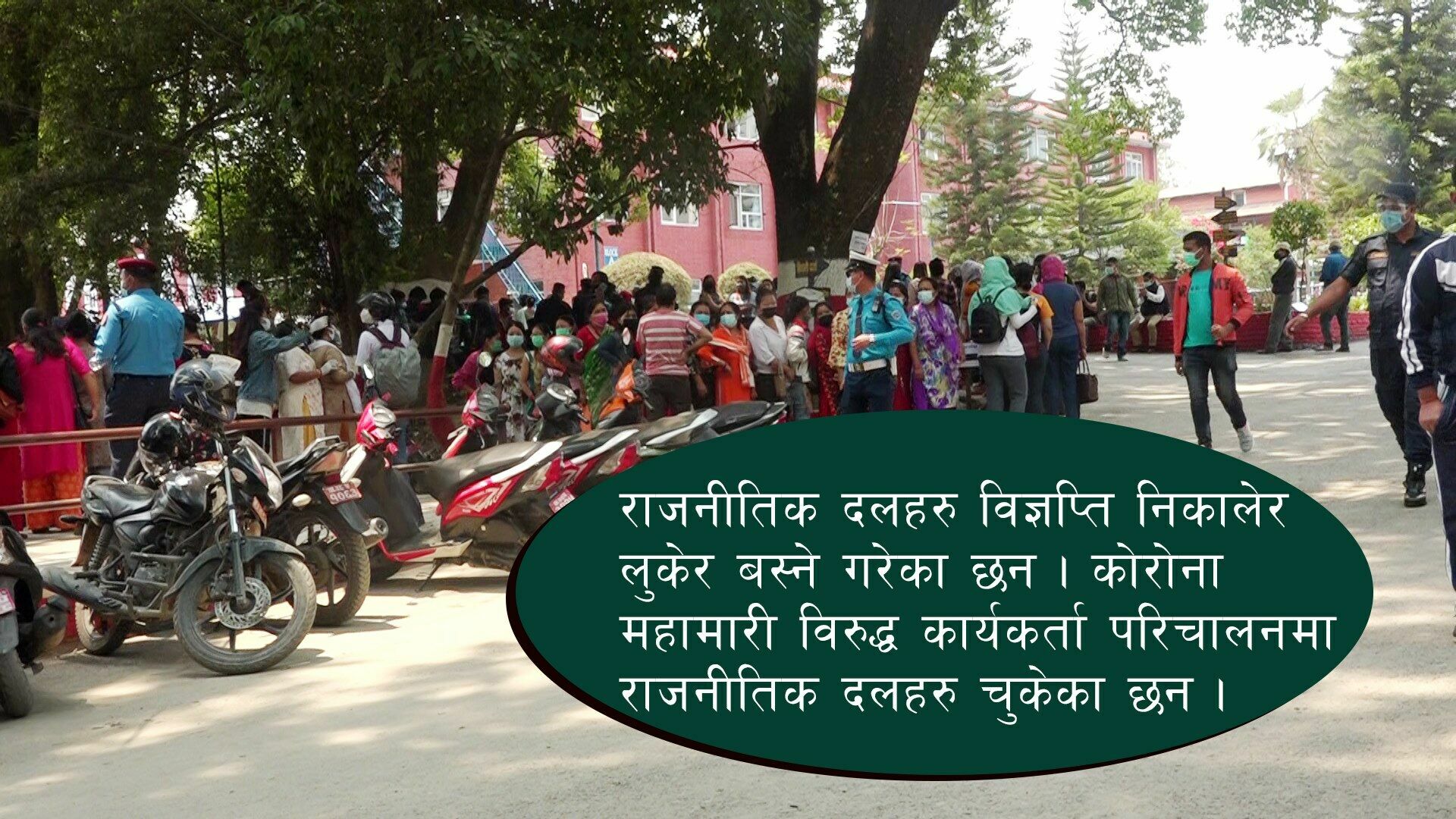 नेपाली कांग्रेस,नेकपा एमाले र नेकपा माओवादी केन्द्र जस्ता ठूला र धेरै कार्यकर्ता भएका राजनीतिक दलको भूमिका पनि कोरोना महामारीका बेला महत्वपूर्ण हुन्छ । त्यसै गरी जनता समाजवादी पार्टीको भूमिका पनि निकै महत्वपूर्ण छ । तर कुनै पनि दलले आफ्ना कार्यकर्तालाई जनचेतनाका लागि फिल्डमा उतार्न सकेकन छैनन् । ठूला राजनीतिक दलले चाहेमा आफ्ना कार्यकर्तालाई उतार्न सक्छन भन्ने कुरा उनीहरुले बिभिन्न राजनीतिक भेलामा गराएका कार्यकर्ताको उपश्थिितिलाई लिन सकिन्छ ।
