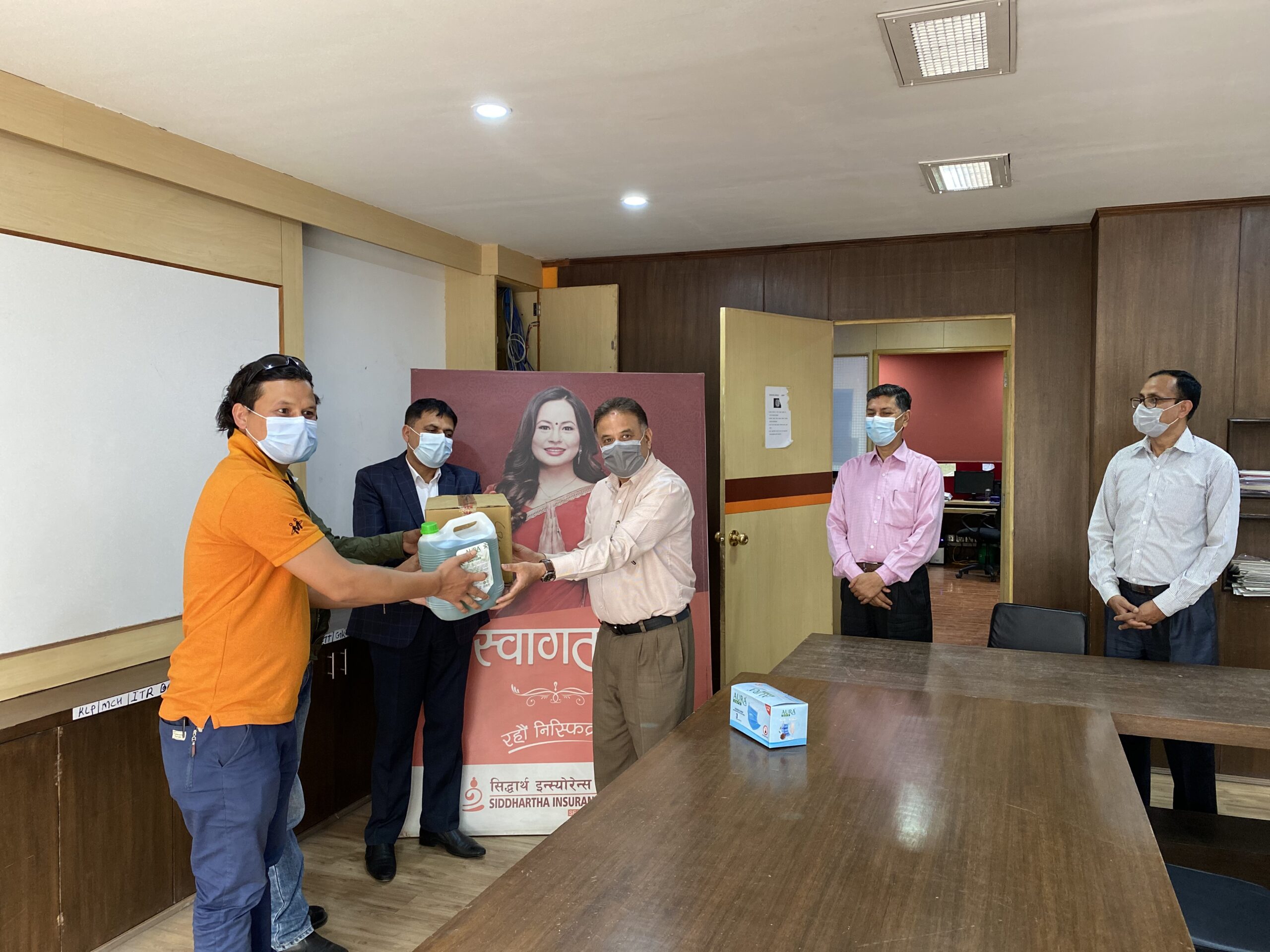 काठमाडौं । सिद्धार्थ ईन्स्योरेन्स लिमिटेडले गत महानगरीय ट्राफिक प्रहरी महाशाखा रामशाहपथ काठमाडौंलाई ५००० थान माक्स तथा २५ लिटर सेनिटाइजर प्रदान गरेको छ ।