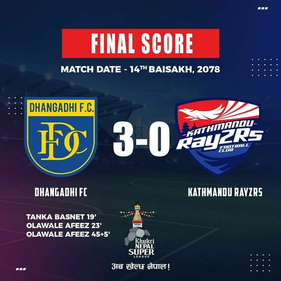 आफ्नो पहिलो खेलमा विराटनगर सिटी एफसीसँग ३–० गोल अन्तरले नै पराजय भोगेको धनगढीले भ्याली डर्बीको विजेता काठमाडौं रेजर्सलाई यति फराकिलो अन्तरले हराउनु धेरैका लागि अप्रत्याशित नतिजा भएको छ ।