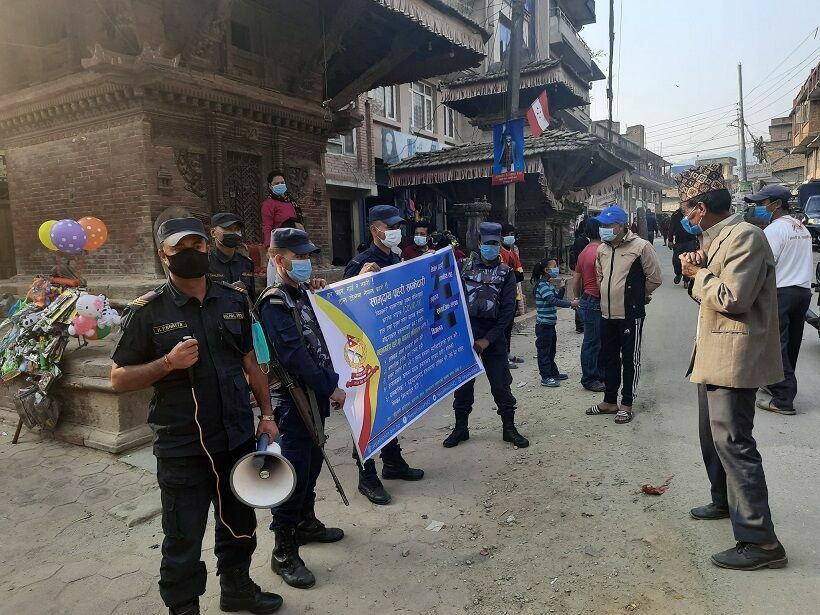 नेपाल प्रहरीले विभिन्न स्थानहरूमा कोभिड-१९ को जोखिम न्यूनीकरणको लागि सचेतनामूलक सन्देश सहितको माइकिङ, सवारी साधनहरूको चेकजाँच, सचेतनामूलक प्लेकार्ड प्रदर्शन लगायतका कार्यक्रमहरू संचालन गरेको छ ।