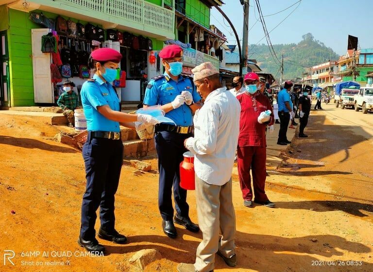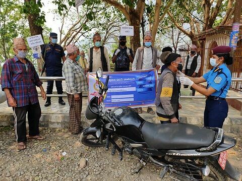 कोभिड-१९ को संक्रमण रोक्न नेपाल सरकार स्वास्थ्य मन्त्रालयद्वारा तोकिएको सुरक्षा मापदण्डलाई दुरुस्त रुपमा कार्यान्वयनका लागि नेपाल प्रहरीले ‘तपाईंको मास्क खै ?’